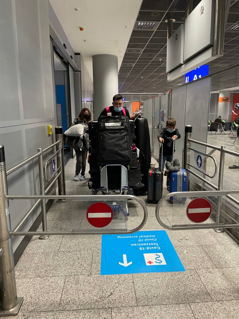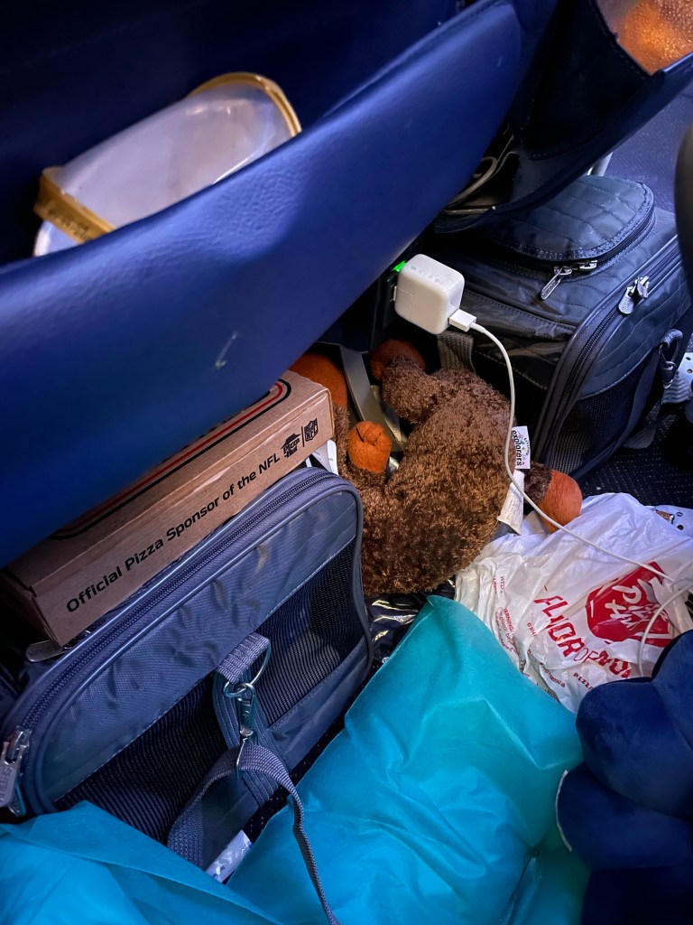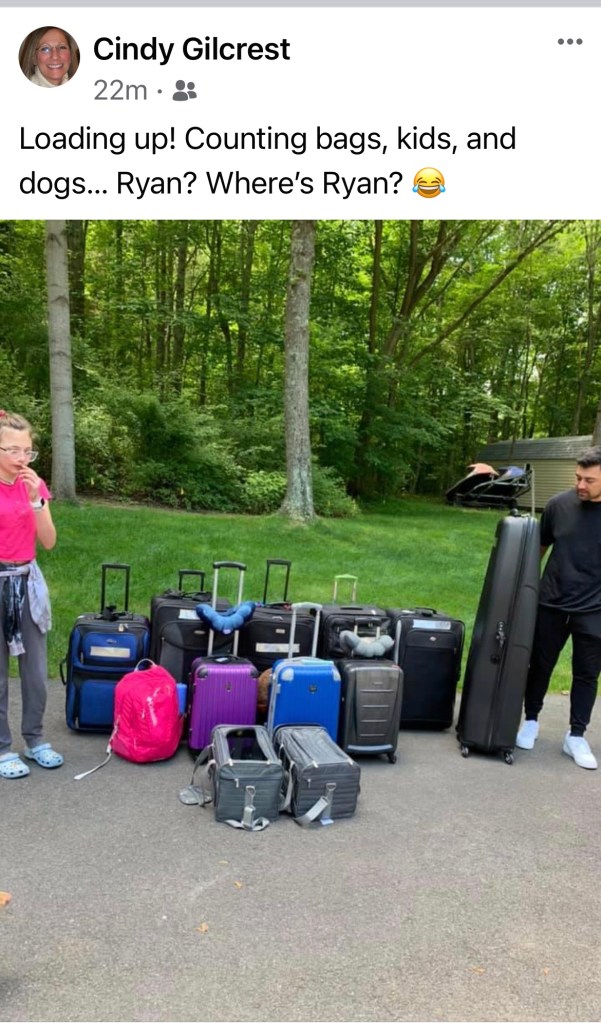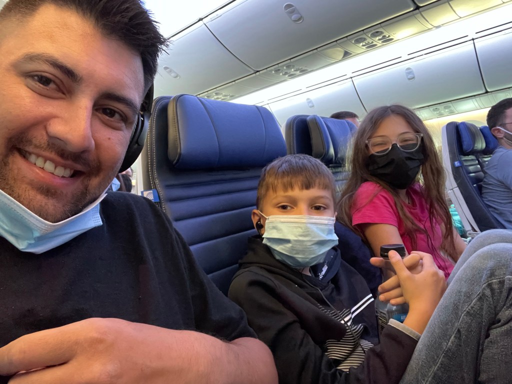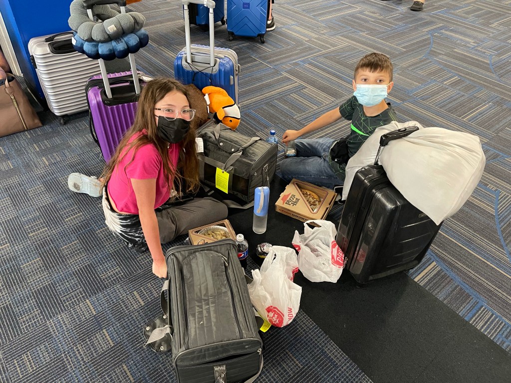 Matt’s Dad and Cindy took them to the airport and helped them get all nine suitcases checked in. Then Matt made it to the gate and onto the plane with both kids and dogs with no issues. Matt said the dogs did great on the plane and barely made a noise.