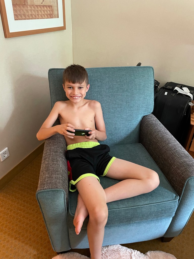 The kids have to do a seven day quarantine. They have their own room, down the hall from us and we are allowed to make visits and bring them food. Brooklyn’s been making origami paper cranes and Ryan has been playing games on his phone.