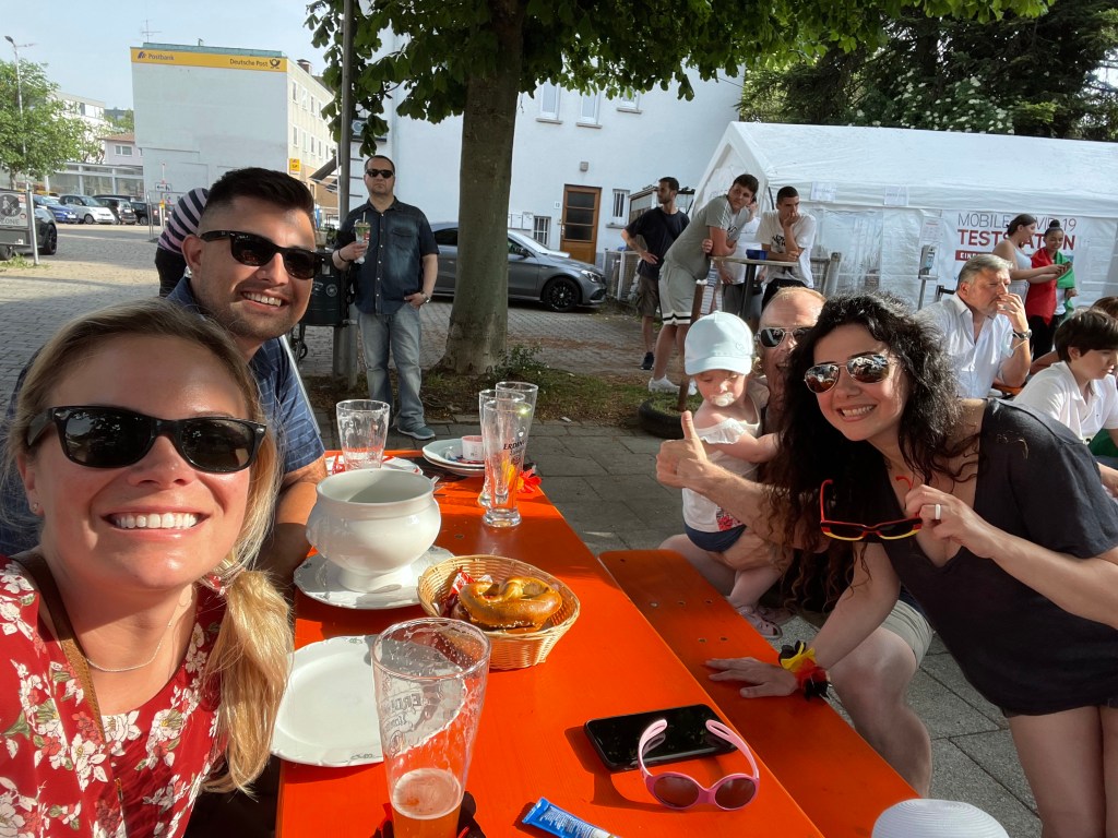 We met my coworker and her husband in the Sindelfingen Platz to have dinner and watch the game.