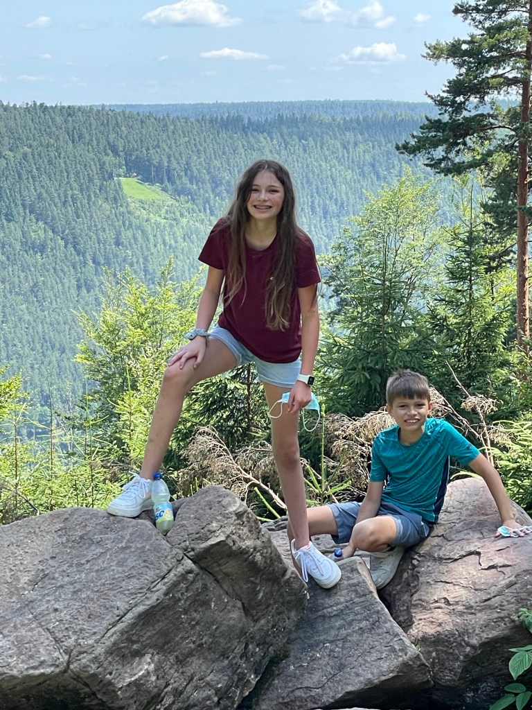 We hiked back to the tram and stopped for some pictures along the way. During our picture session, Ryan walked through and got burned by Stinging Nettle on one leg. He sat down on a rock, in pain, and got burned by another Stinging Nettle; on the other leg. Then, Brooklyn got burned running towards him. Stinging Nettle is apparently pretty abundant in Germany. It’s in the Poison Ivy family and instead of causing an itch, it creates a small acid burn where it touches you. Luckily, it does not spread and the burning turns to tingling pretty quickly. Another German family saw it happen and of course was carrying first aid cold packs with them and saved us.