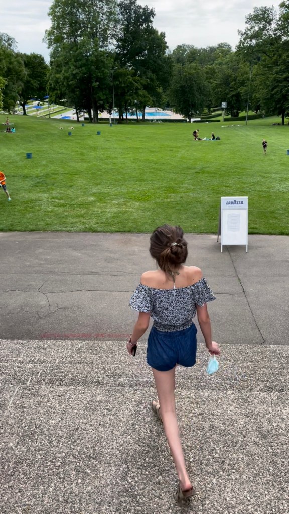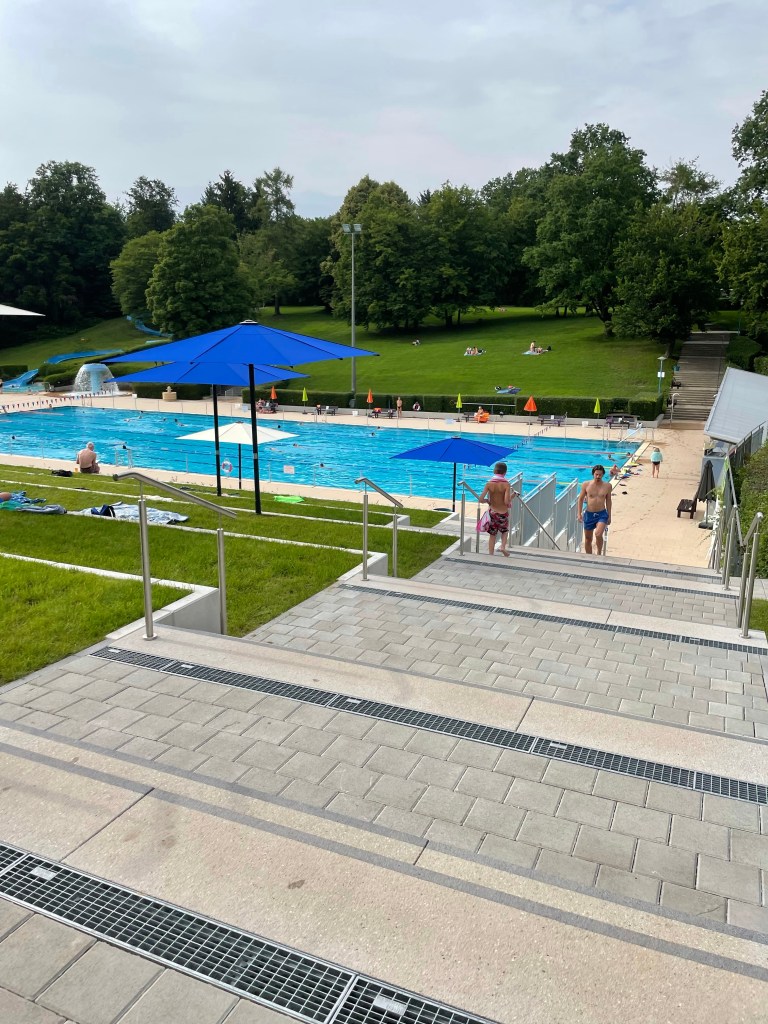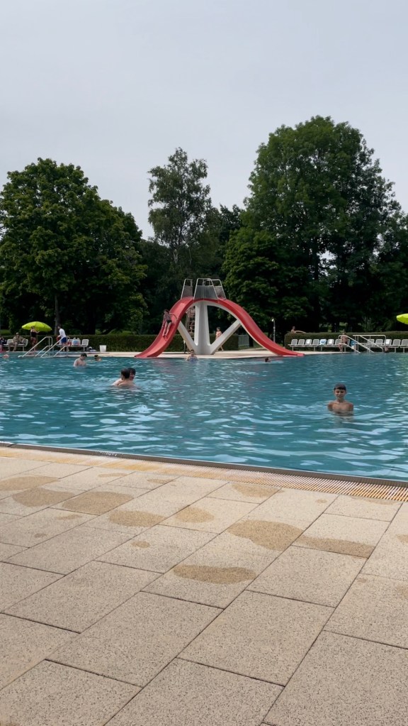 Monday was HOT aka 80 degrees 🤣. Our friends texted us and asked if we wanted to go to the Sindelfingen Freibad, or the public pool. We had so much to do but I knew the kids needed to get out and I needed a break.We’ve been spending most of our time with the one family who used to live in the same town. They know a third family from Fairfax, VA, who just arrived in Germany and are still in the hotel. We had video chatted with all of them prior to the move but this was our first time meeting them in person.