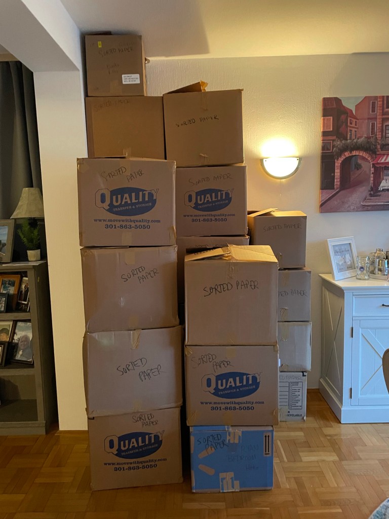 Matt and I have been hustling to get the house in order and cleaned up to decrease the kids’ stress levels and things are finally starting to come together. We called to have the empty boxes picked up from the moving company but they won’t be able to come for a couple of weeks so Matt has been making several trips to the recycling center.
