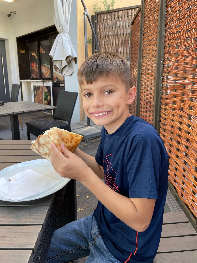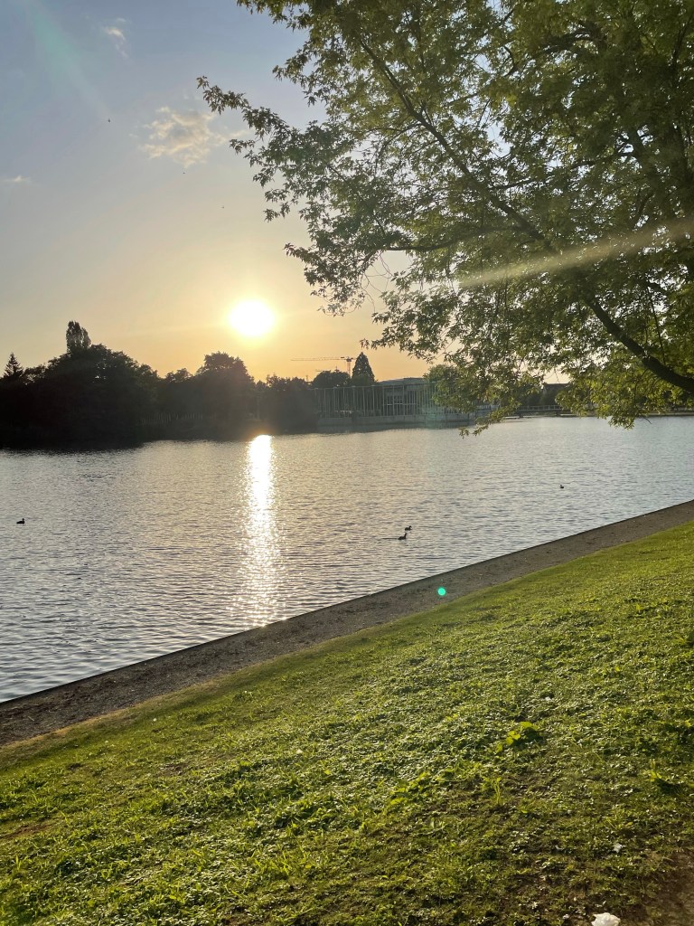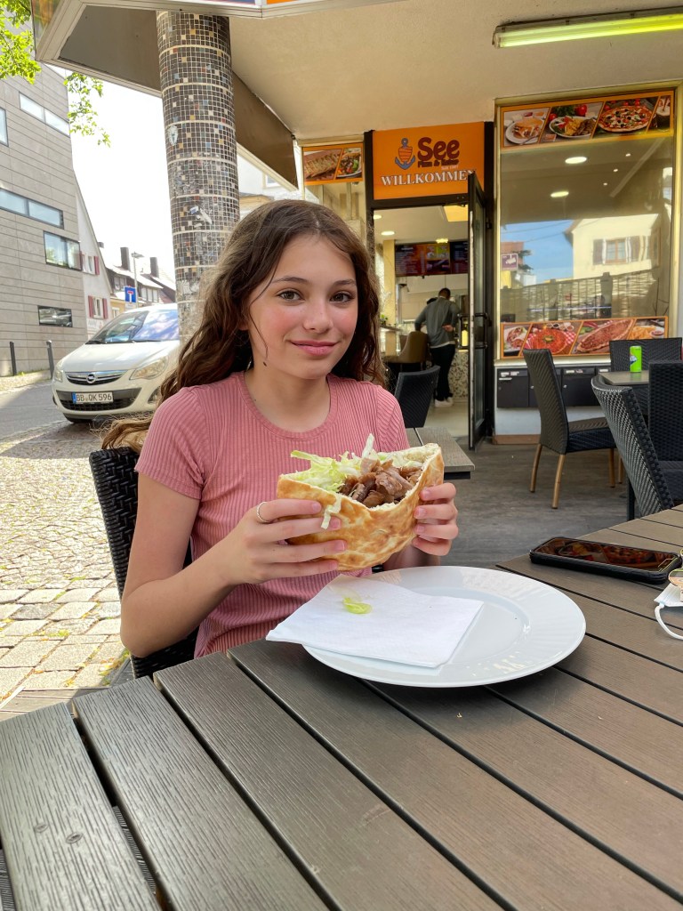 On Friday, the sun finally came out after a week of torrential rains. We decided to walk to dinner in Böblingen. The kids (and Matt) have loved trying Döner Kebabs at Kebab shops so we picked one of the three in town for dinner. After dinner, we walked down to Böblinger See, the city lake, had ice cream, and went home.