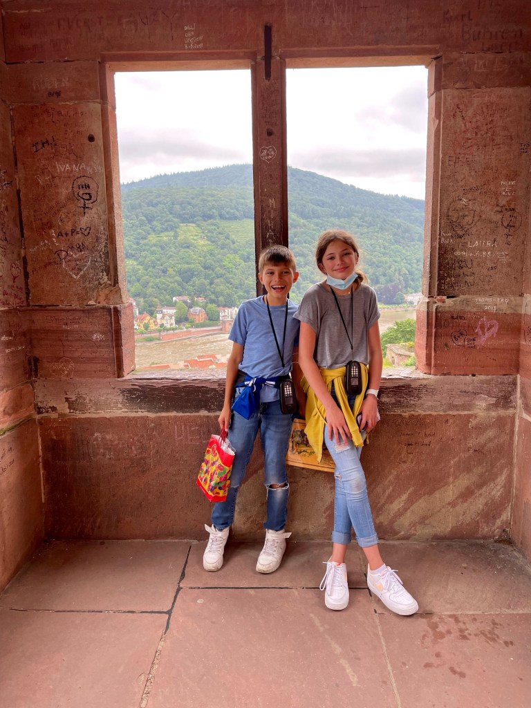 Next stop was Heidelberg Castle, which is up on a hill, overlooking the city. To get there you have to walk up many, many, many steps, which I can tell you the kids really enjoyed and definitely didn’t complain about 😜