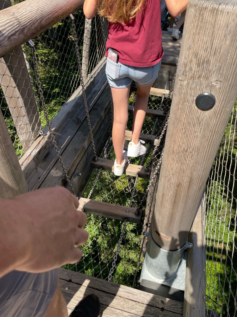 We walked up to the center but we all chickened out and decided we had gone far enough and ran (well actually walked cautiously, semi-quickly) back. The bridge was swaying so hard in the wind and being able to see down through the floor was creepy. Now we can say, “been there, done that” though.