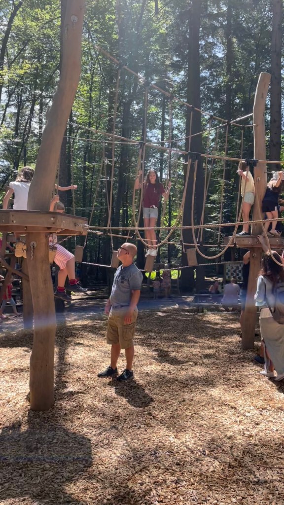 After the Treetop Walk, we went straight to the Woodland Adventure Park, which was pretty much a huge playground and obstacle course for kids. Matt and I sat in the Biergarten and had lunch while the kids played.