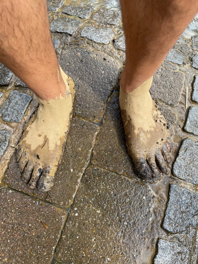 Barefoot walks are pretty popular in Germany. The website of this particular one explains that walking barefoot helps re-connect you with nature, increases your balances (due to your toes not being restricted), toughens you up, and “improves your constitution.” Matt is terrified of walking around barefoot outside after getting a bee sting as a kid so this was a big day for him.