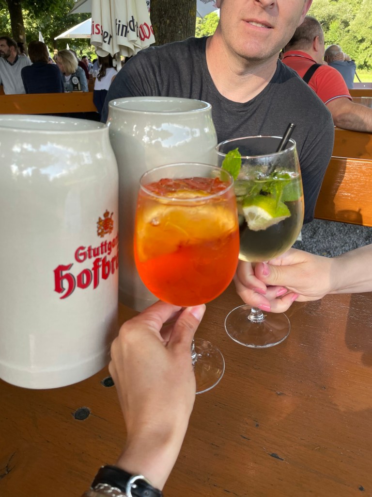 After we got home, we got Ryan settled and Matt, Brooklyn and I headed to the biergarten to meet some friends. They have the cutest 2 year old daughter and Brooklyn wanted to come along to play with her, which worked out great for all of the parents.