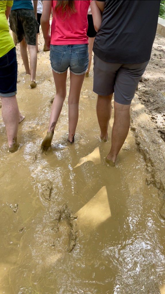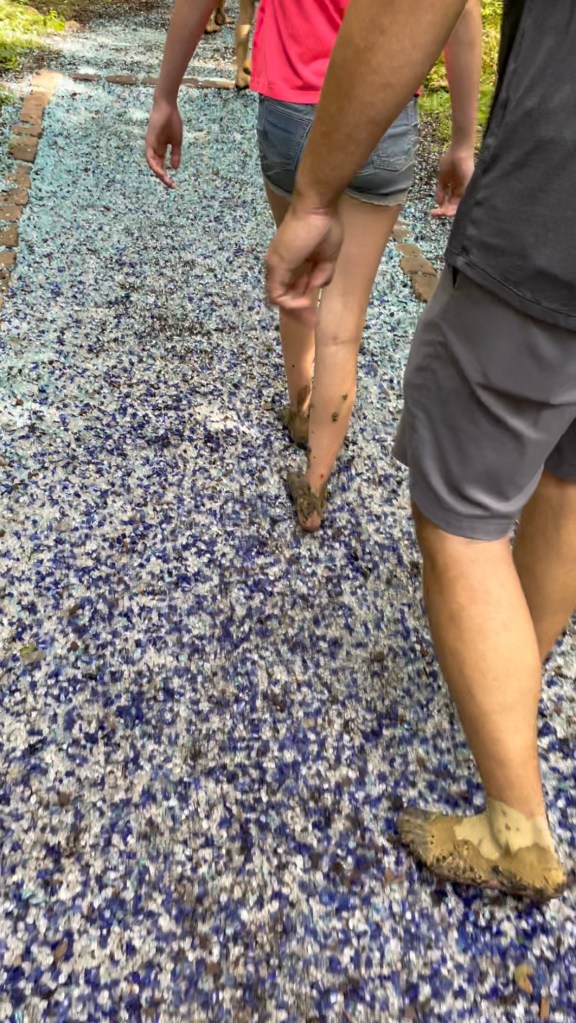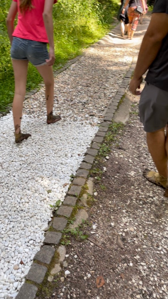 As we went on, the trail also mixed in different types of gravel that were really hard on your feet. However, there were lots of Germans there with their little kids and even walking babies around so it made it hard for us to complain. I wondered aloud what was next and I wish I hadn’t asked because it was a pit of broken glass. We made it through the entire 3k of terrain challengers (including two glass pits). At the end, they had a foot washing station.