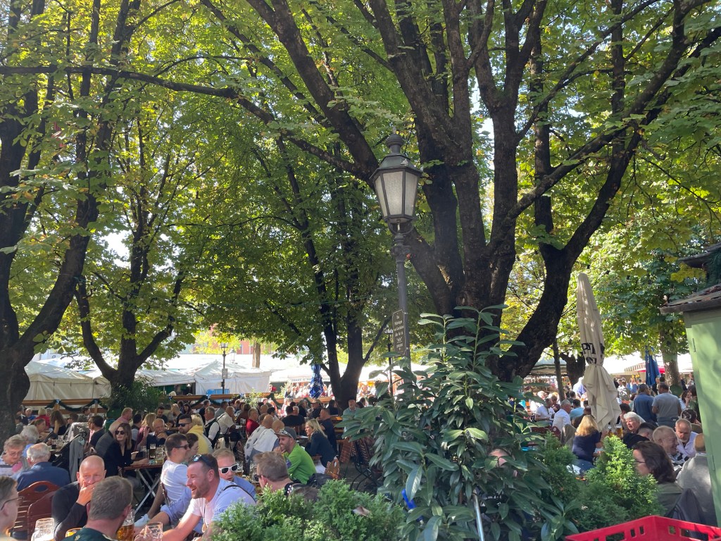 The Viktualien is a big open air market with a huge Biergarten in the center. Oktoberfest would usually be opening this weekend but it was cancelled this year. It seemed like everyone was still dressed in their dirndls and lederhosen and enjoying their beer, just in a different setting this year. The Biergarten was packed!
