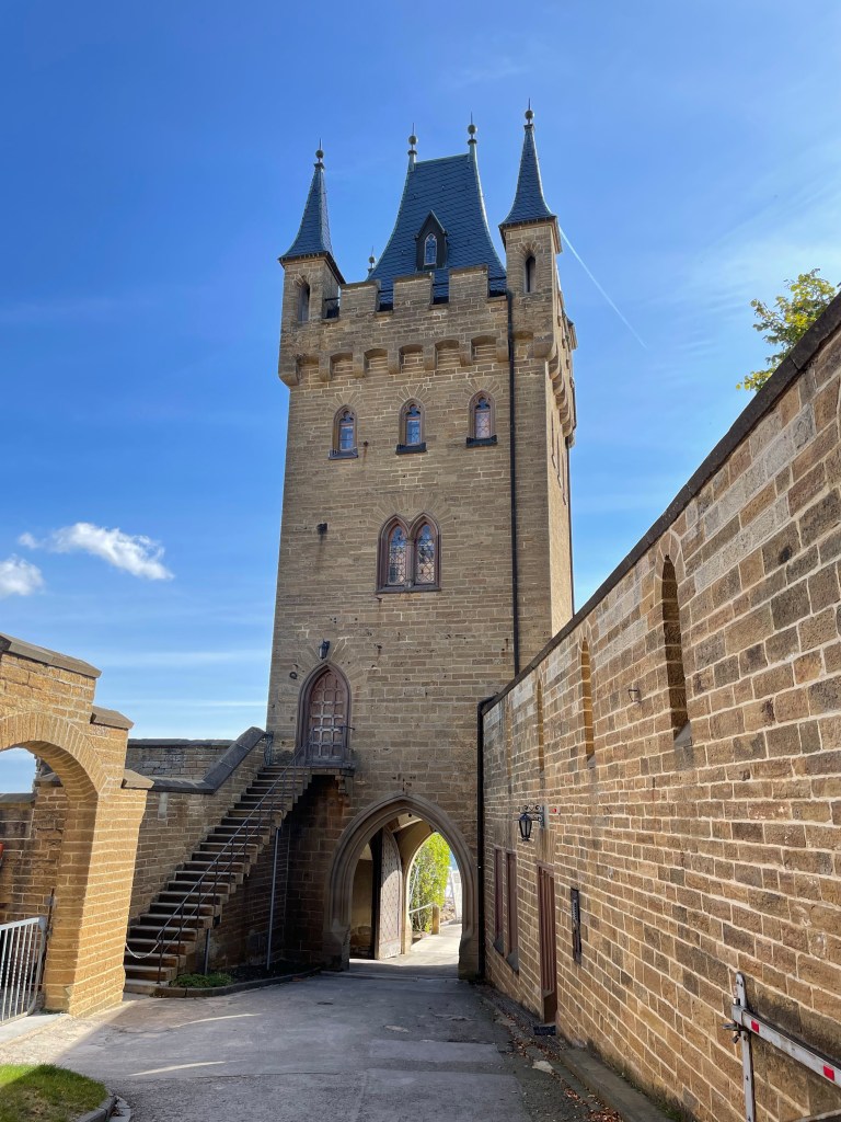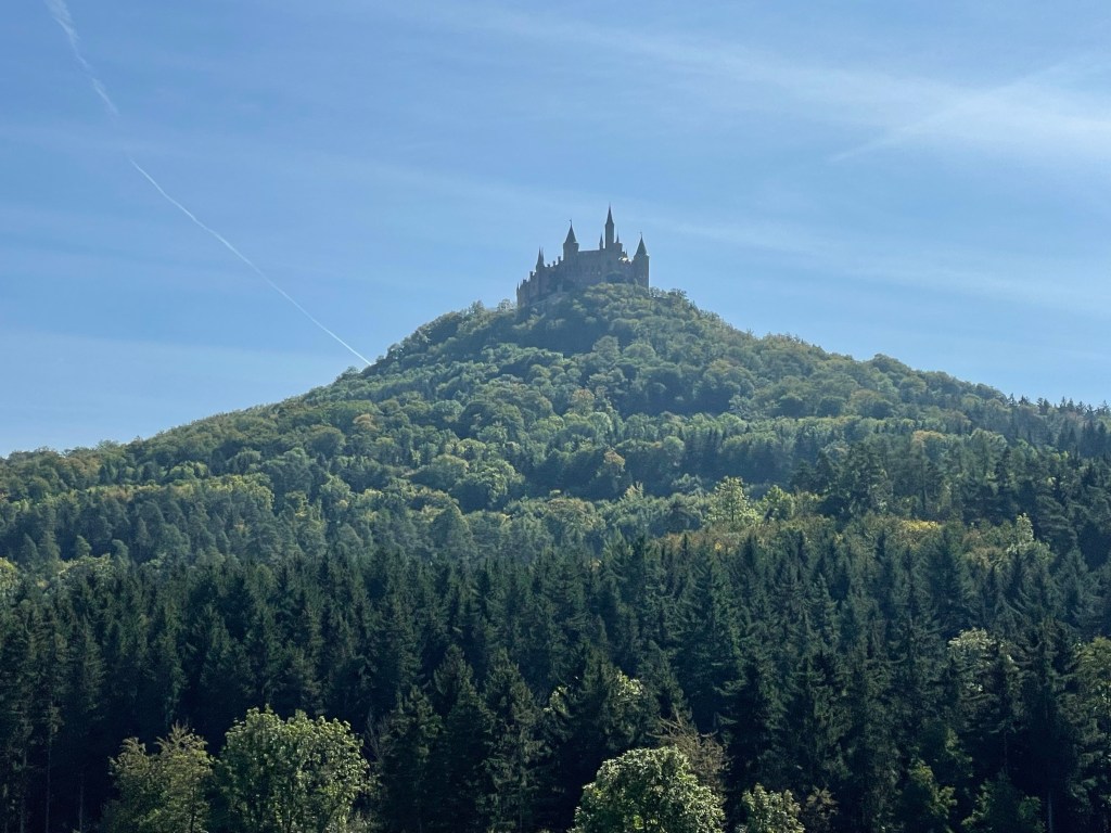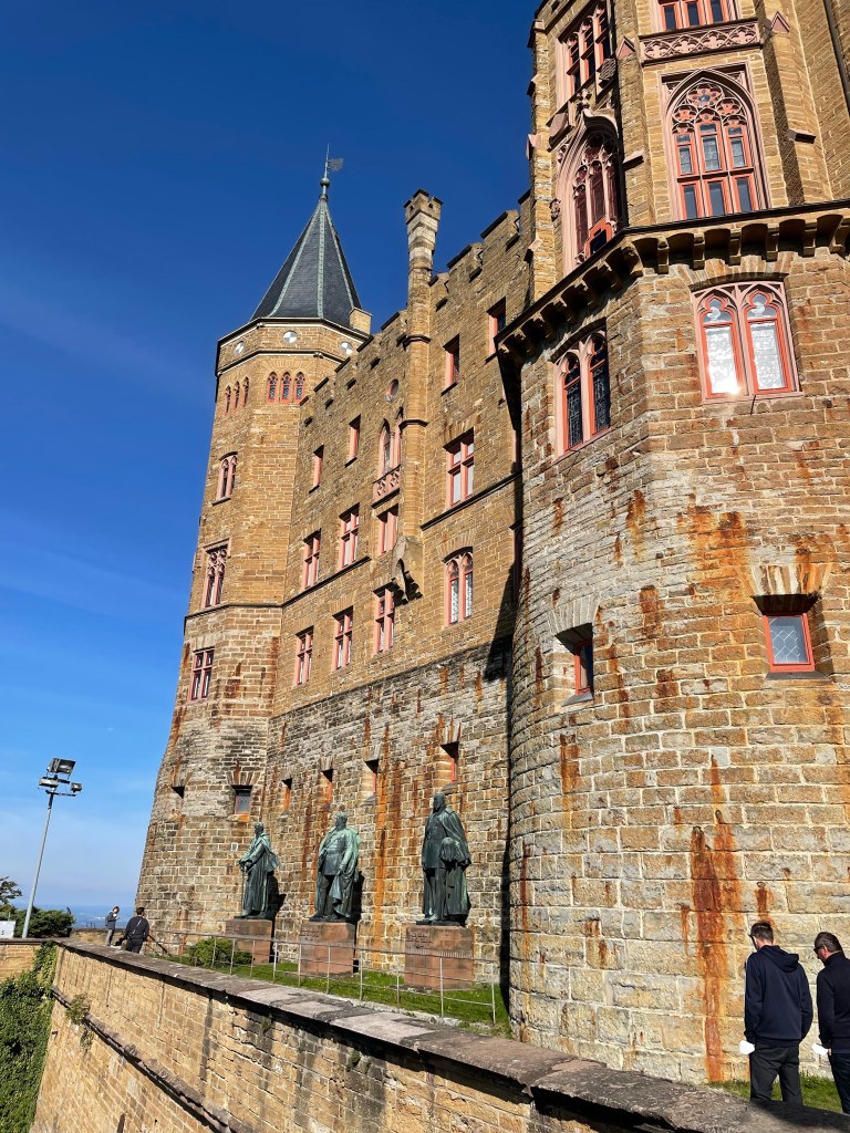 Saturday we headed to Hohenzollern Castle, about an hour south of our house. From the pictures, it’s a beautiful castle, perched on the highest mountain in the area. We could see it for miles as we drove up to it. We toured the interior, which was really short, and then walked around the castle walls for more great views over the countryside. Where was the beautiful view of the castle that we always see of this castle though? I consulted with Google to find this place.