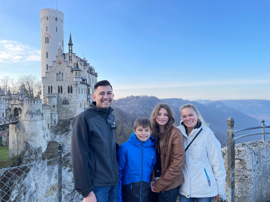 Liechtenstein castle is about one hour south of our house. When we got there, we found a Glühwein stand right at the parking lot and decided to stop for a pick-me-up while the kids played on the playground.