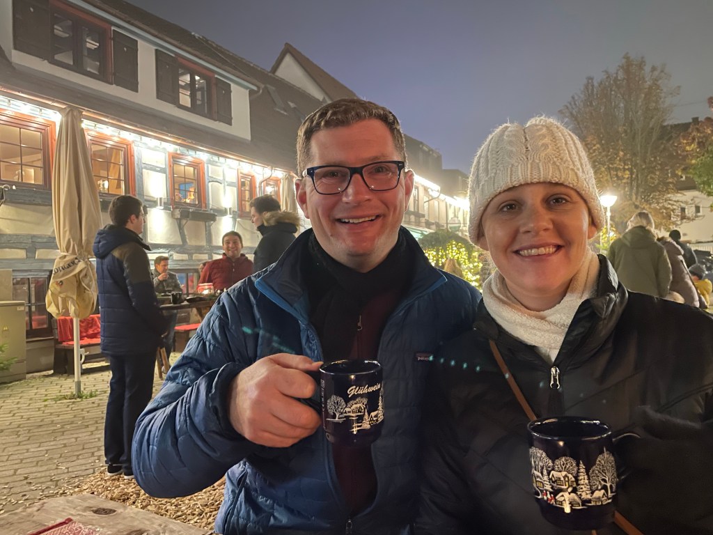 We let Megan and Pat get some sleep in the car and then headed out to dinner at one of our favorite restaurants by the lake in Böblingen. At this point we were all exhausted but we made sure to stop in at the Christmas hut in Sindelfingen for one more Glühwein.