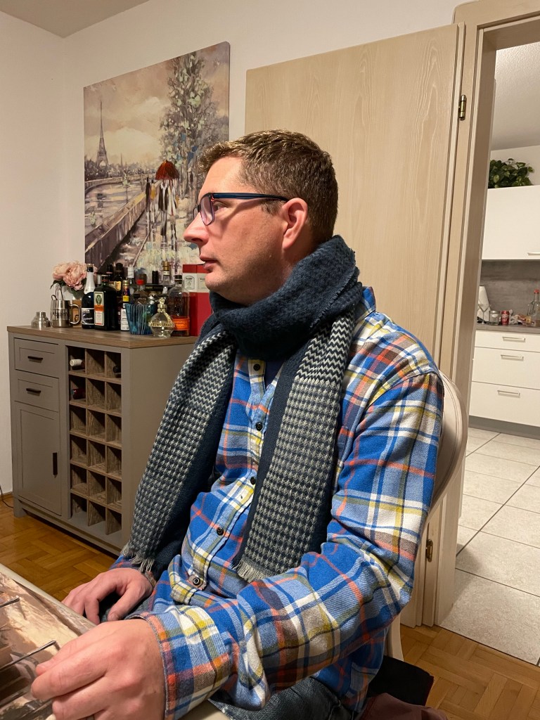 Afterwards, we went home for a few more drinks and games. I’ll leave you with this parting shot of Pat wearing his new euro scarf.