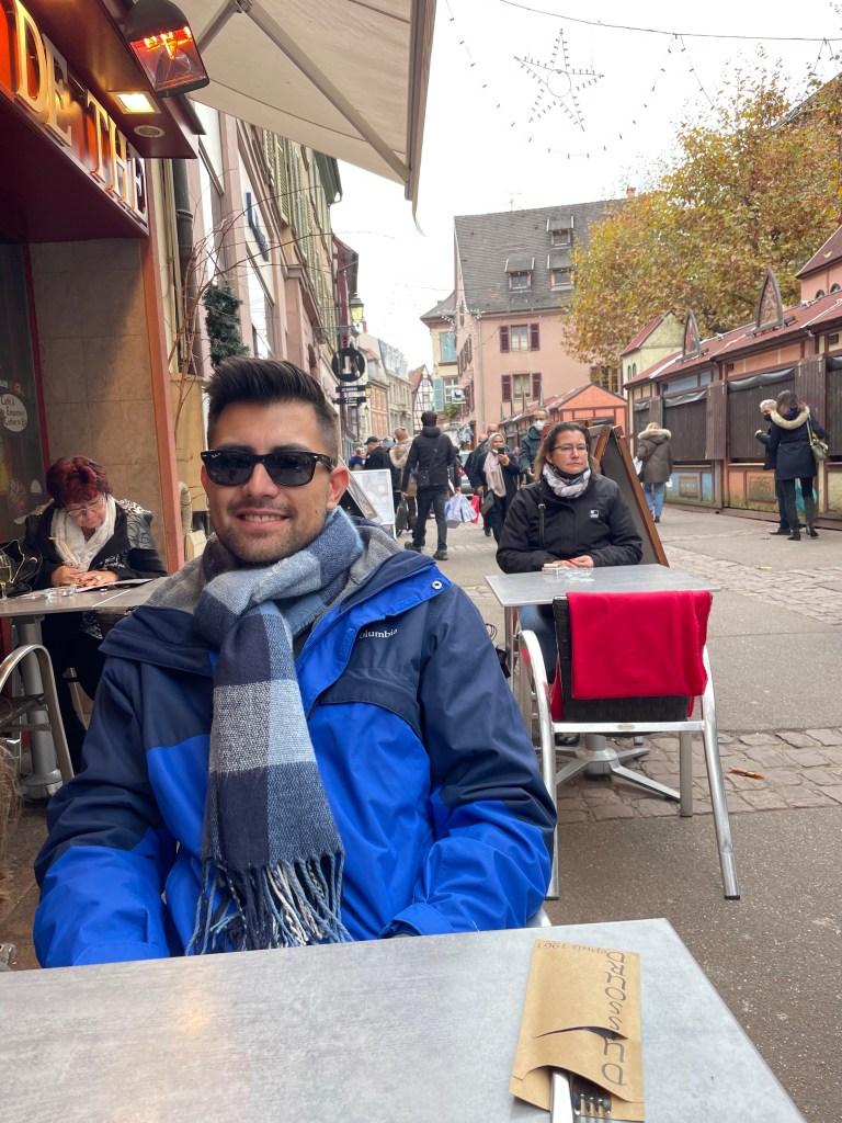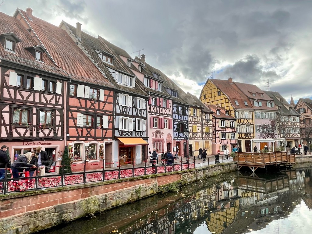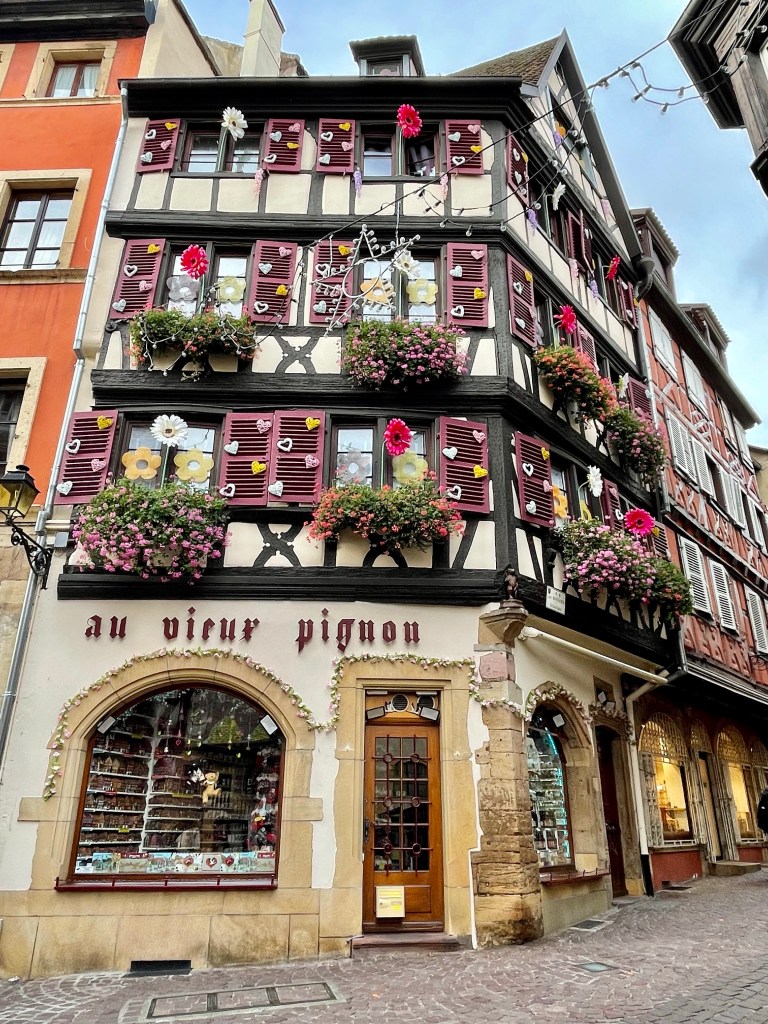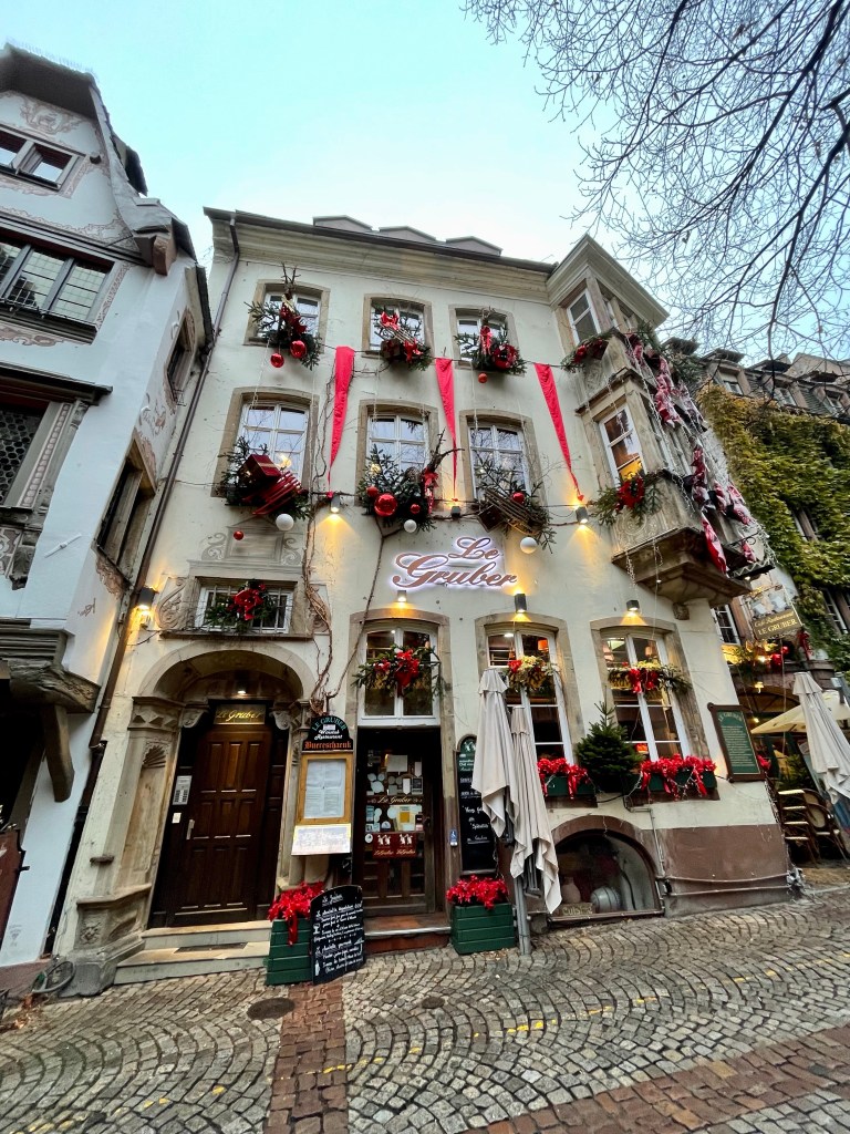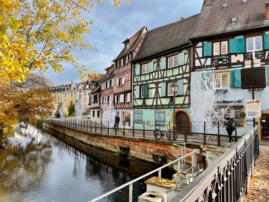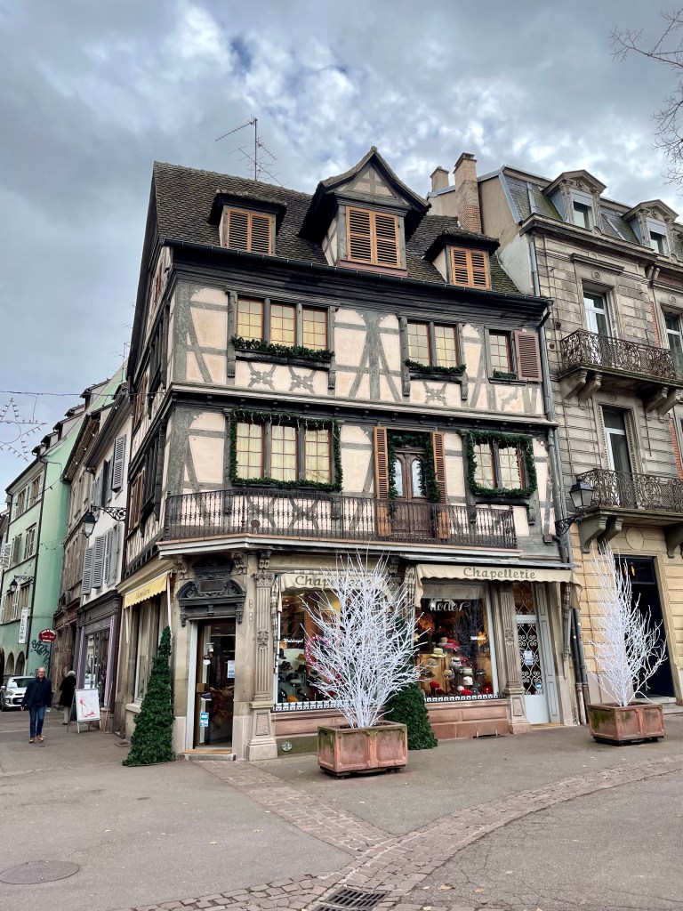 When we got up Saturday, the fog was gone thankfully. We drove about 45 minutes south to Colmar, a smaller, preserved medieval town. The town was getting ready for Christmas and decorations were everywhere. The Christmas Market stalls were set up for the market starting in a few weeks.