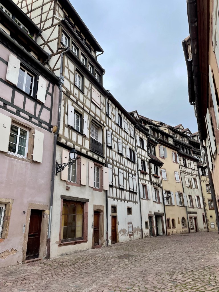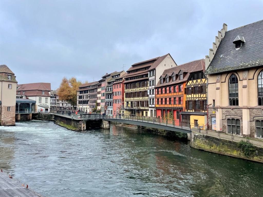 We walked over to Petite France, which is an almost perfectly preserved medieval neighborhood with all cobblestone streets, half timbered buildings, mills, and canals. It was really pretty but I bet it would have been prettier without the fog and clouds.
