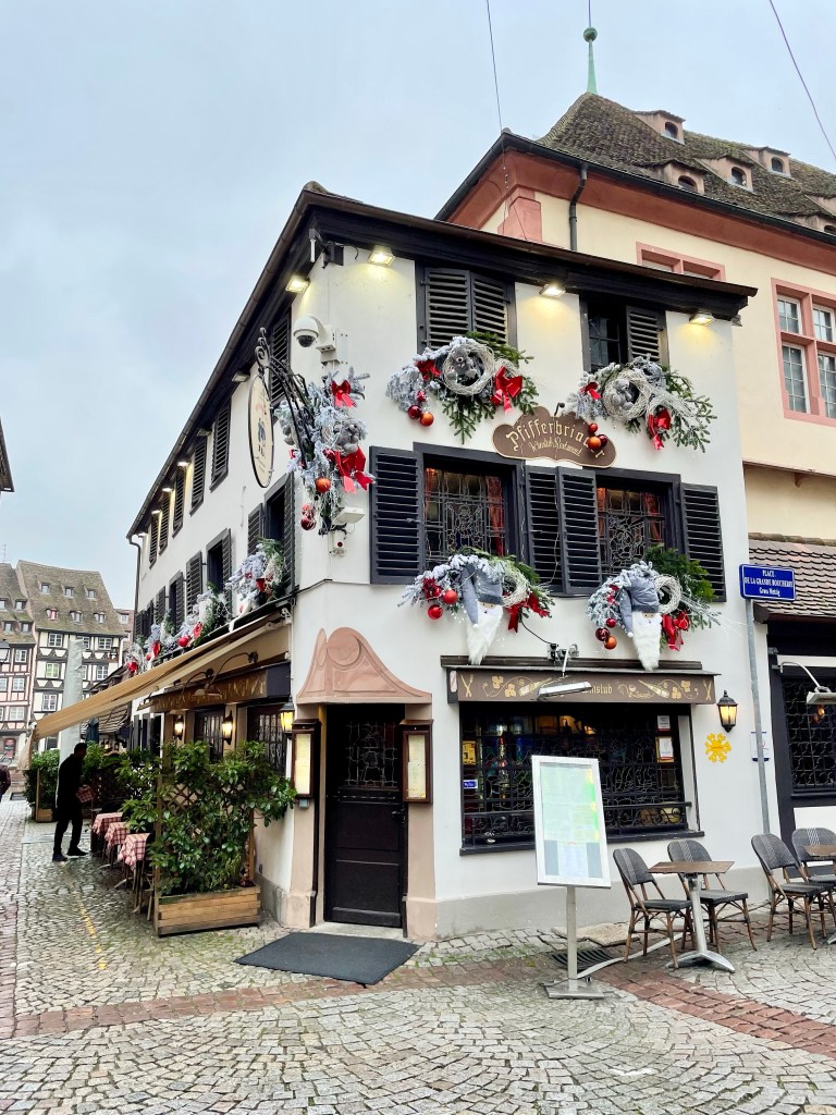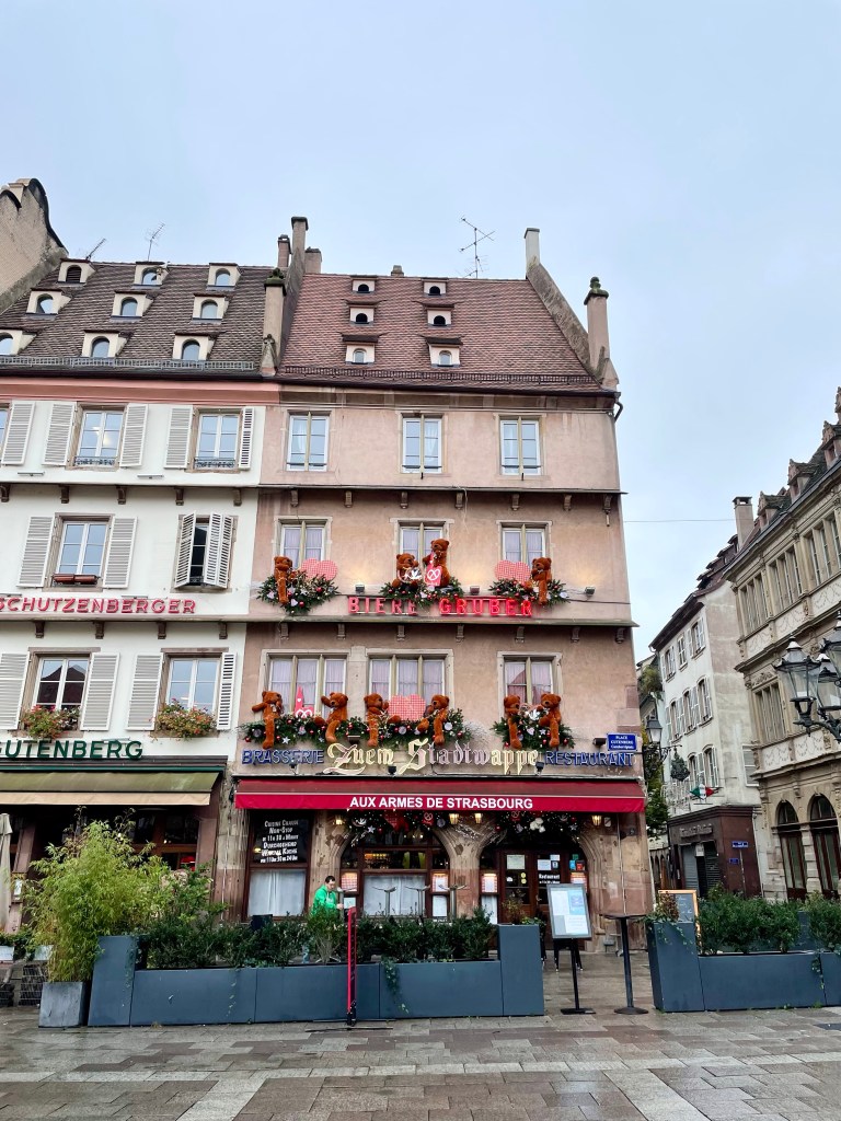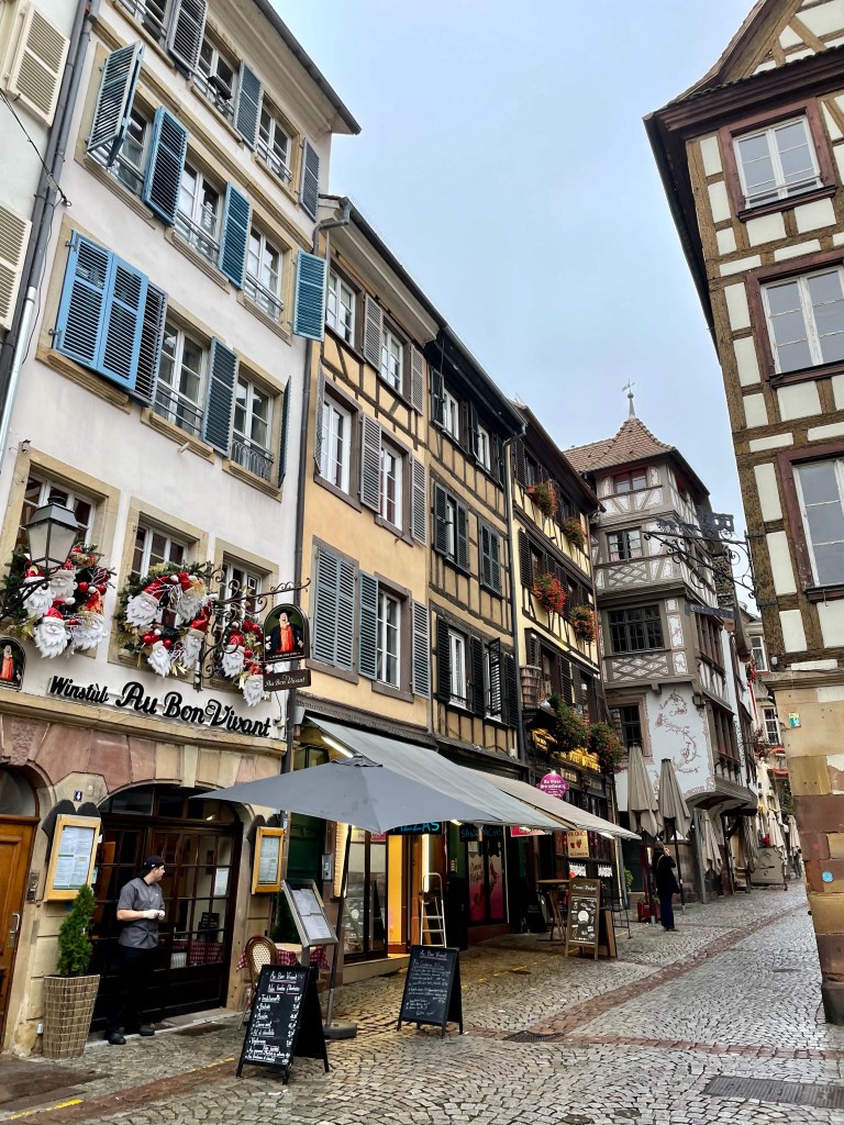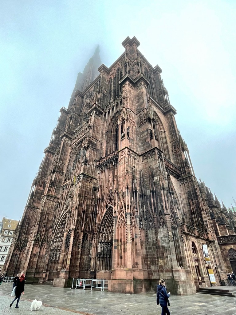 Sunday, we checked out Strasbourg, even though the fog was back. I would describe Strasbourg as a larger version of Colmar. It’s also charmingly medieval and was made even more cute by the Christmas decorations that were going up