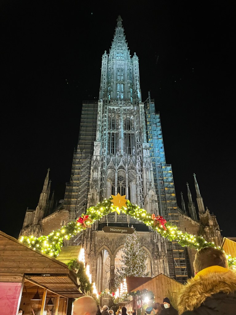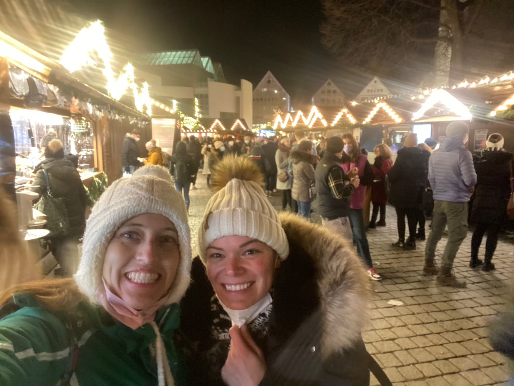 We drove about an hour east to Ülm, a city on the border with Bavaria. It was pretty packed due to it being the premature last night of the market and we had to wait in a longgggg line to show alllllllll of the documents needed to enter: Vax certificate, negative test result and passport. Our state is now 2G+ meaning we have to be vaccinated or recovered PLUS have a negative test result to do anything. Luckily the long line for document check moved pretty quickly and we were in.