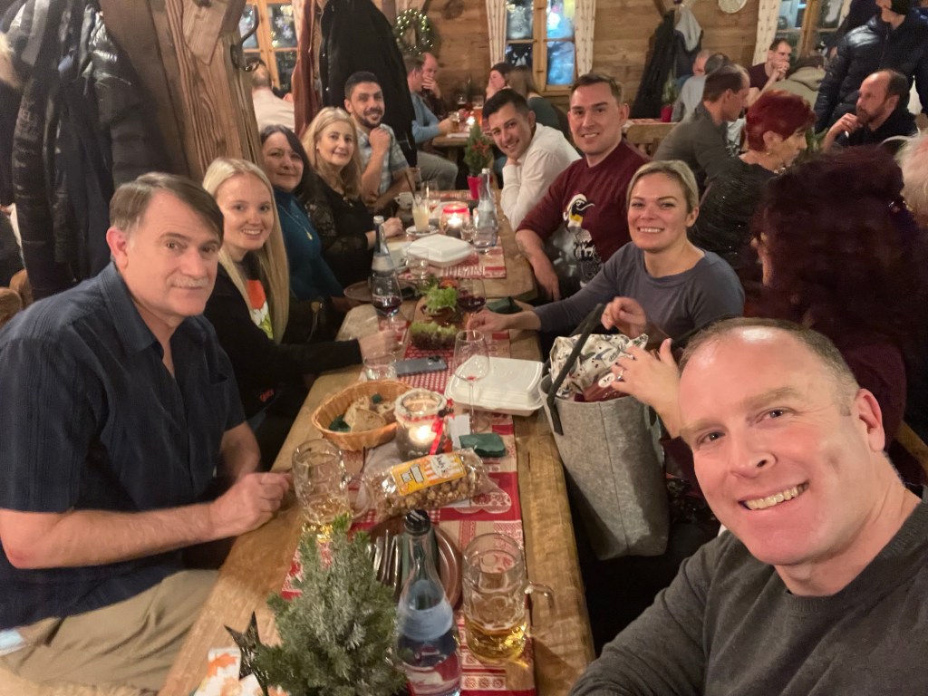 Thursday night was my work’s Christmas Party, of course at the Sindelfingen Christmas Hut. We finally had some of their food- so good and so big! Lots of wine and gifts, and saying goodbyes before the holidays.