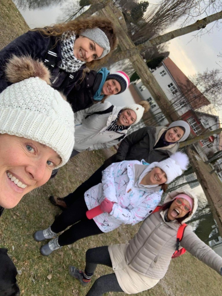 We met in the village after school drop off and walked out of town, through some fields, through the woods, back through a farmer’s barnyard, and back to the cars. We clocked 5 miles in an hour and half and I headed home for lunch and a long nap.