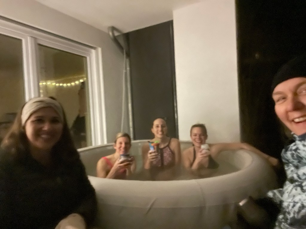 Saturday night, I got together with some friends for a hot tub night. My friend has a huge, inflatable hot tub and we spent plenty of time enjoying it, their fire pit, and some wine.