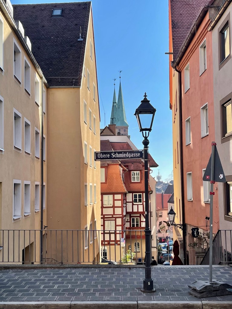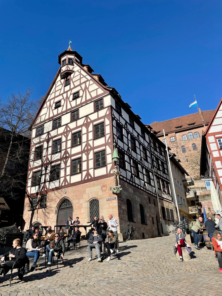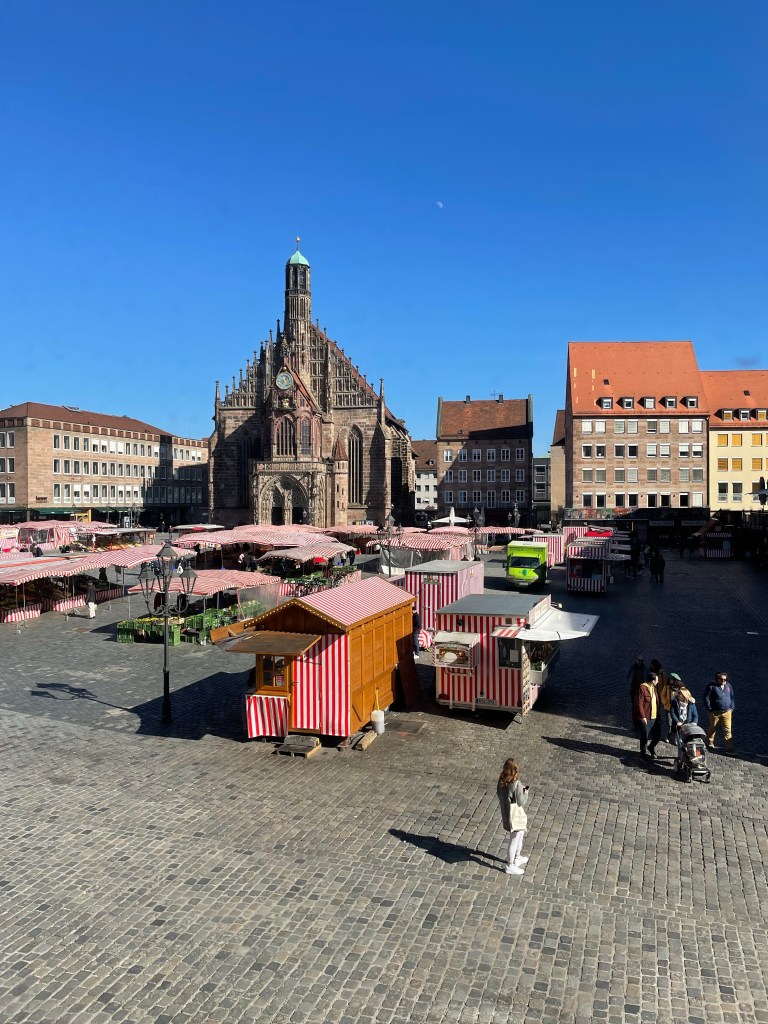 Afterwards, we headed into downtown Nuremberg. Since we had to head back to Stuttgart early the following morning, we hit the ground running in order to check everything off our list. We walked about four miles around the Altstadt over the course of the day. We started with lunch at the Marktplatz where we had a chance to try Nuremberger sausages.
