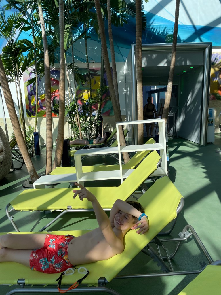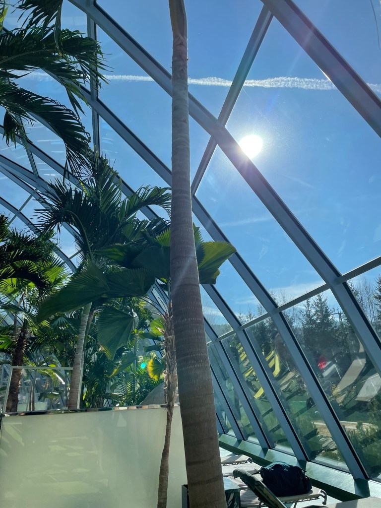 The theme of Badeparadies is “Caribbean in the Black Forest,” and they pretty much hit the nail on the head. There are two sides to the water park; the adult side and the kids side. The adults’ side has fine dining and a biergarten. However, it’s also “textile free” which means you’re required to go in the nude. They hide that part pretty well as the only things we saw were the door; the rest was well hidden behind lots of hedges and foliage. We stayed over on the kids side and the kids wore themselves out on the slides and in the wave pool. Within the kids’ area, there was a quiet, greenhouse-style lounge area for adults, where lots of people were laying out, sunning themselves.