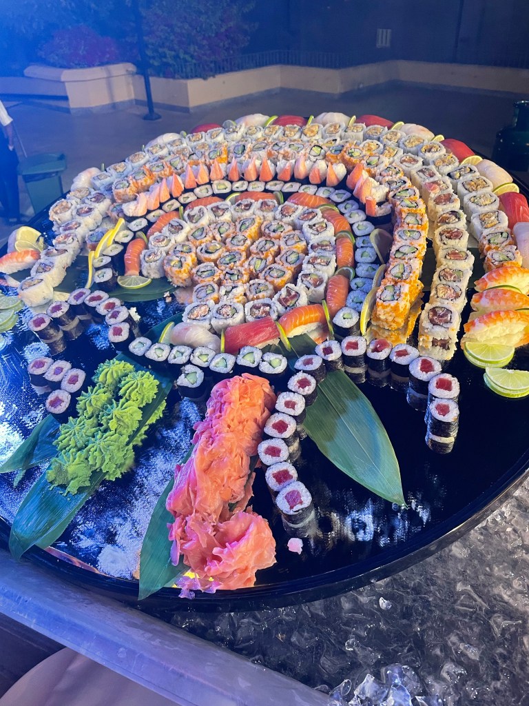 We had dinner at the hotel on the first night. There were probably over ten tables of food on offer. I was so hungry, I only got a picture of the sushi table but this should give a good idea of what the other tables looked like.