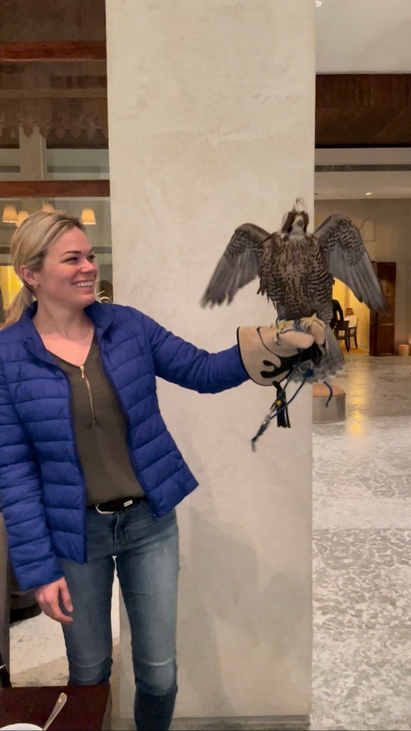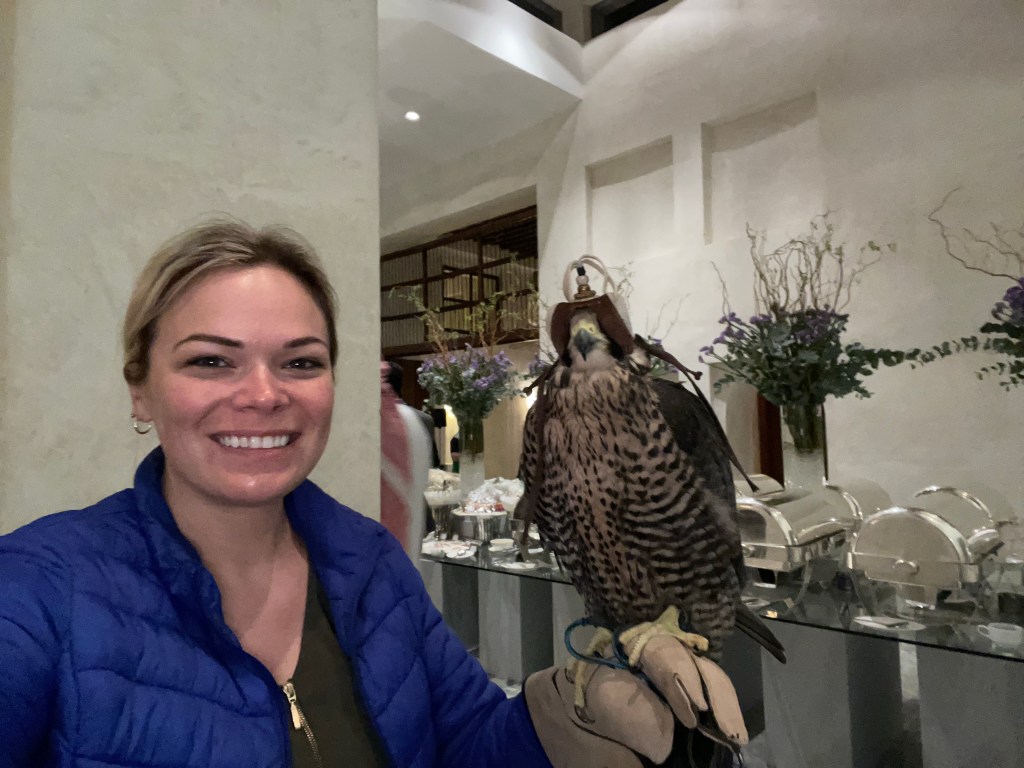 A falconer brought a falcon that we took turns holding. The falcon was blindfolded and as I was told, would bite your face off if it wasn’t wearing it, so it was pretty scary to handle it.