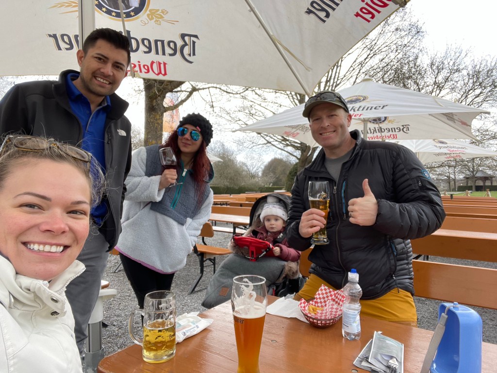 Sunday, we spent most of the day cleaning. We did take a break though when our friends texted us to tell us that it was opening day for our favorite biergarten in Sindelfingen. It was a beautiful sunny day and not too cold so we threw on clothes as fast as we could and sped over. We got our biers and then a cold front promptly blew in, bringing lots of wind and a snow storm. This is Germany.