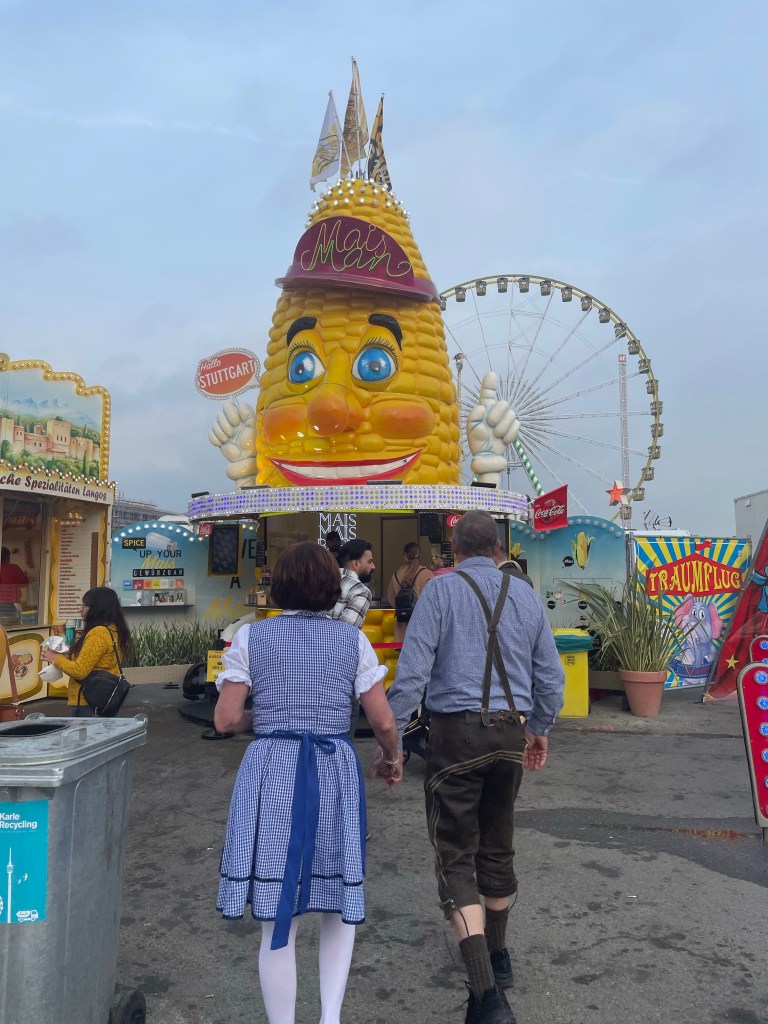My parents have been staying busy, walking all over town and going out to lunch in our village. The weather was rainy in the evenings, but Thursday we took a chance and headed back to Stuttgart Fruhlingsfest.