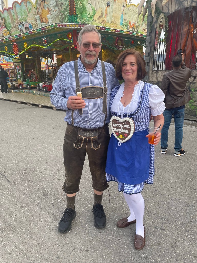 It ended up being a beautiful weather night with low crowds, so it was perfect. We even got my parents to dress up in the traditional German lederhosen and dirndl!