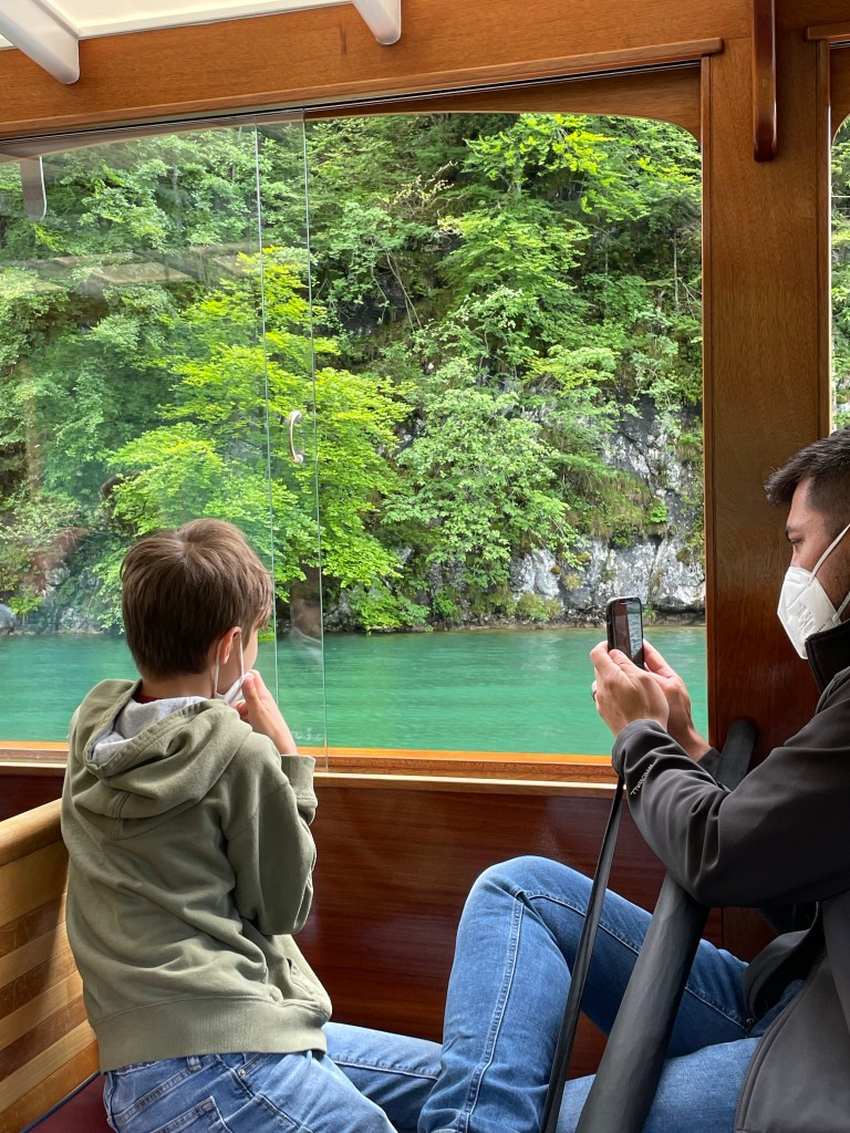Halfway through the journey, the boat stops in a narrow spot in the gorge and the guide played a trumpet to demonstrate the echo effect. Since it was getting close to the end of the day, we only went halfway up the lake to St. Bärtholema, a lakeside church and Biergarten.