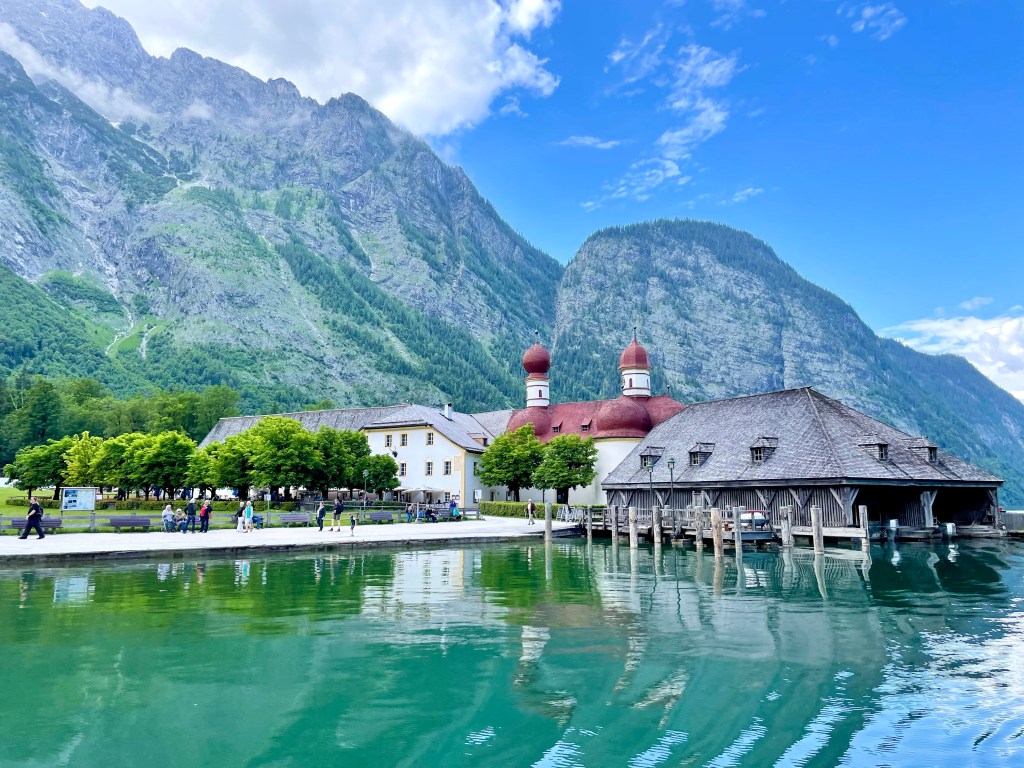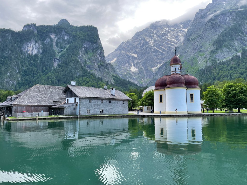 We made our next destination Königsee, or Kings’ Lake, in Berchtesgaden National Park. The weather was still threatening to rain, but we went ahead and got on a boat tour. The lake is a pretty shade of deep green and bordered by tall mountains on either side. The boats are electric, so pretty much silent, making it a really peaceful boat ride.