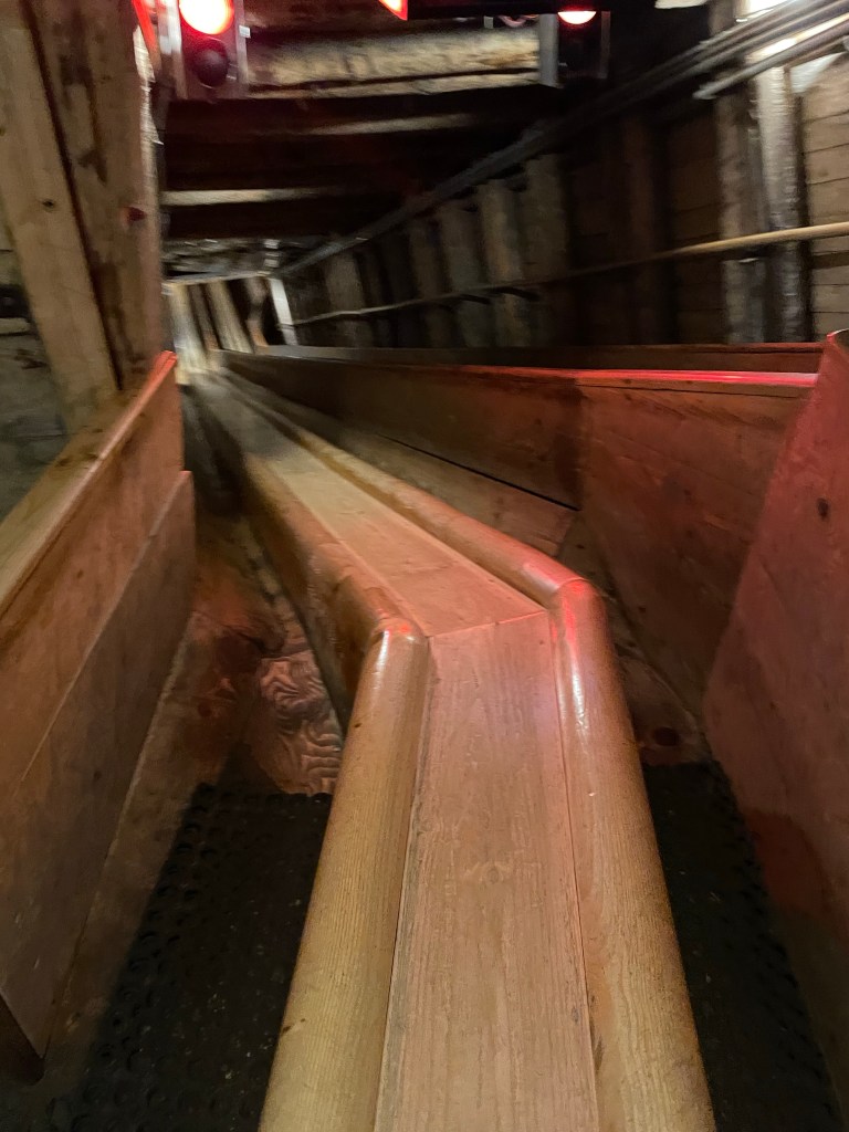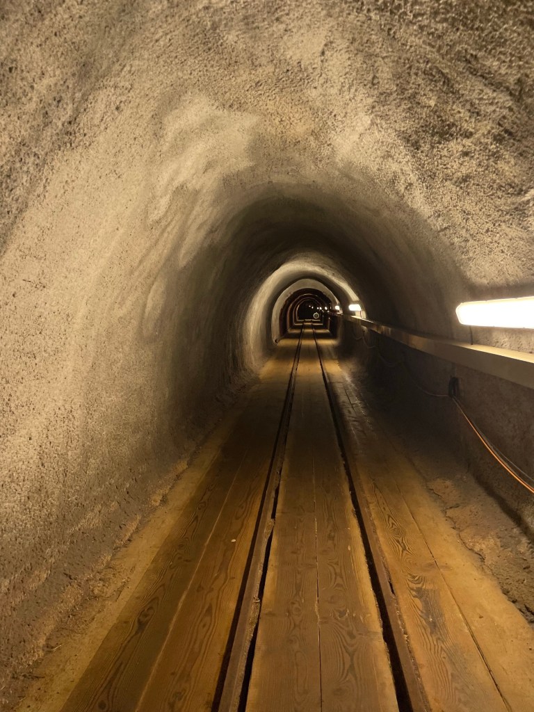 One we were in the mine, we got to the lower levels by sliding down the old, wooden slides. On each level we learned about the creation of the mines, the history of salt mining, and modern salt mining. I’m not doing it justice; it was actually really interesting. It’s crazy that the salt inside the Alps, was a dried up sea bed thousands of years ago. As continents shifted and the Alps formed, the sea beds got rolled up into the core of the mountains. It was a super interesting geology lesson.