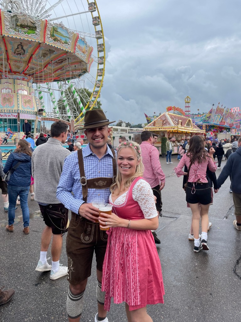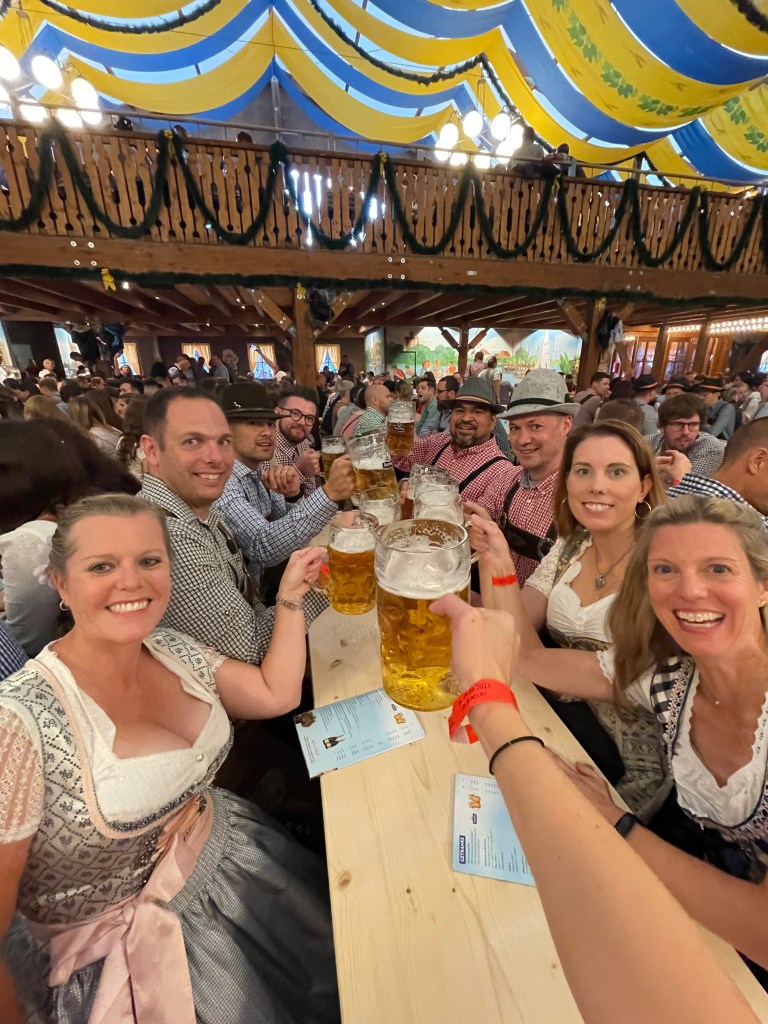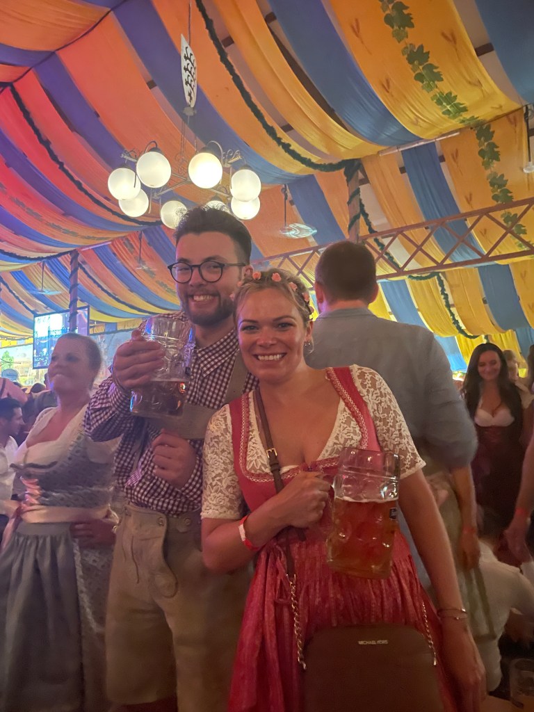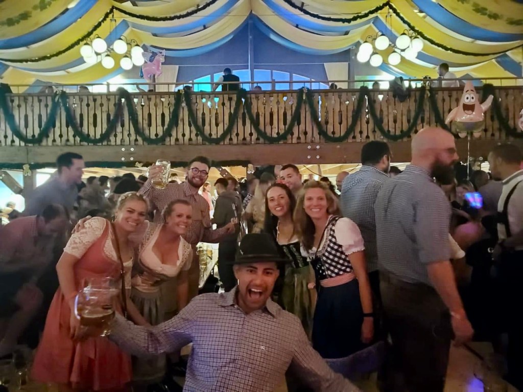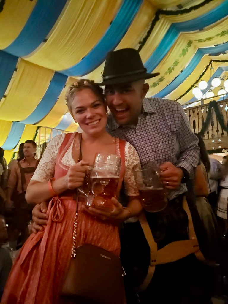 Saturday morning, my cousin flew in from Italy. We picked him up from the airport and went straight to buy him some lederhosen; he was all in on Oktoberfest! Saturday night we headed to the fest grounds. We booked a table at the Furstenburg tent with some friends.