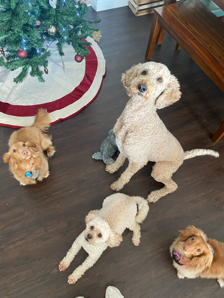 We got home just in time to pick up Slinky and Daisy, who had their own vacation this weekend. The stayed with their friends, Tobi and Paisley.