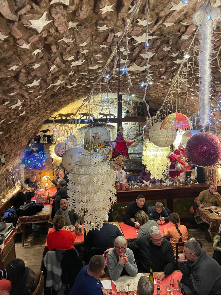 We were surprised when we opened the door to the restaurant, that we were looking down into an old wine cellar full of tables. Once we were sat, we had Alsatian wine, in the tiny glasses it is served in. For lunch we had French onion soup, and Alsatian burgers, which is an almost raw burger with Muenster cheese. It was all so good!