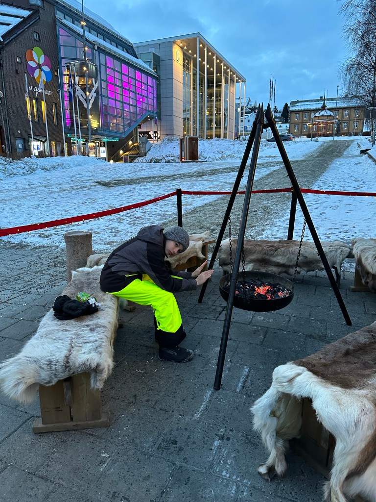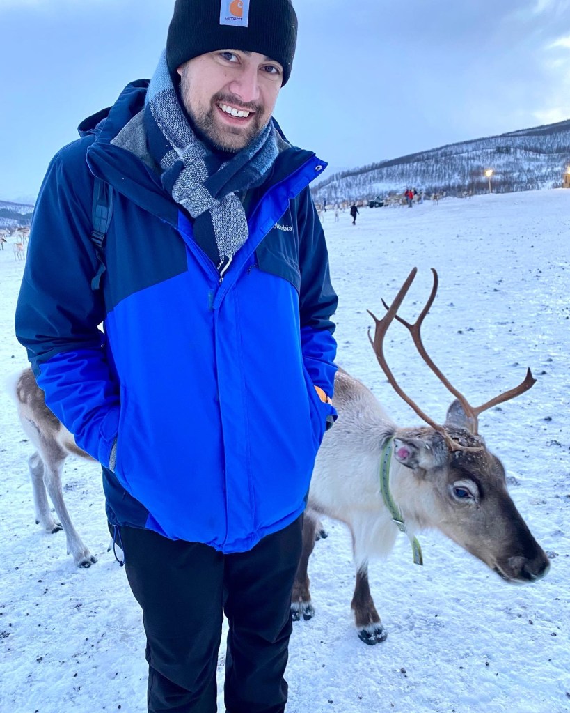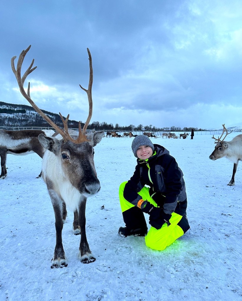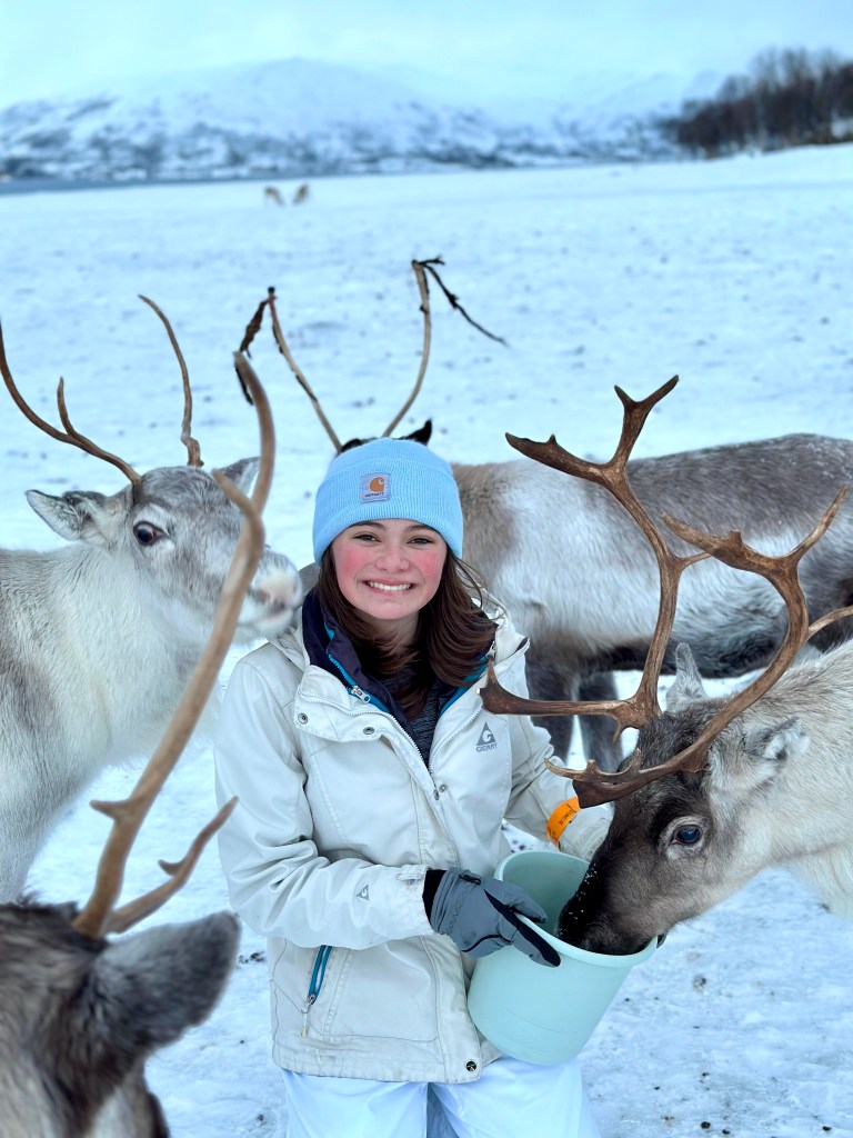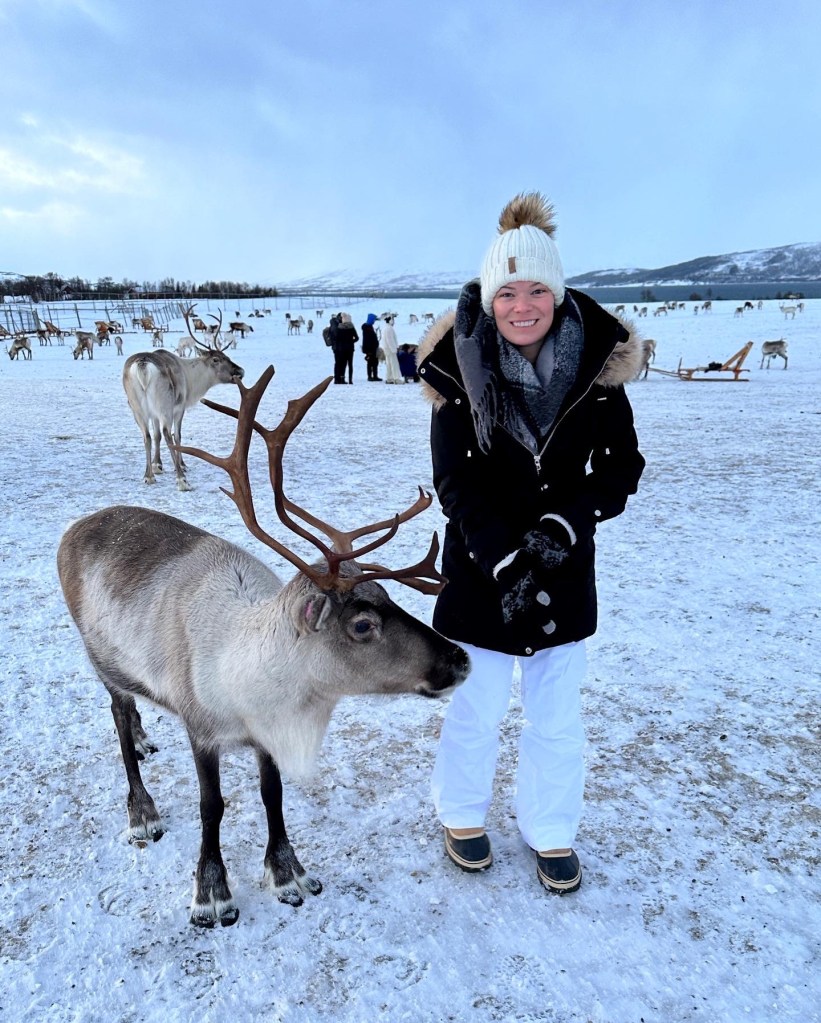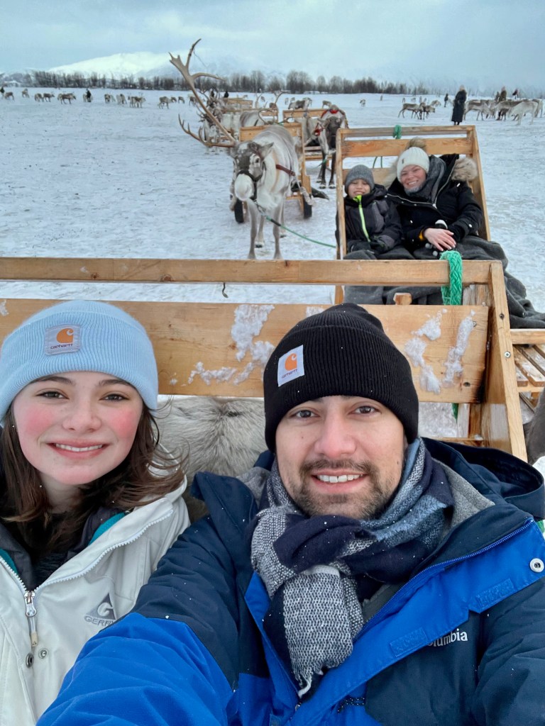 Saturday morning, we took a tour to a reindeer farm. We booked the tour through Tromsø Arctic Reindeer, which included bus transportation to and from the city center. I almost NEVER book organized tours, mainly due to the cost (I can usually do it cheaper myself), and because it’s so touristy. But we didn’t want to drive on the icy roads and just about everything included the bus transport for free. After doing a couple of tours this way on the trip, we agreed this was so much less stressful and easy, and something we will be doing more of in the future.