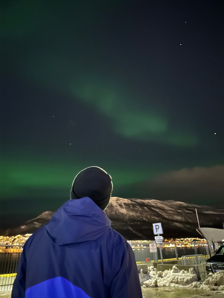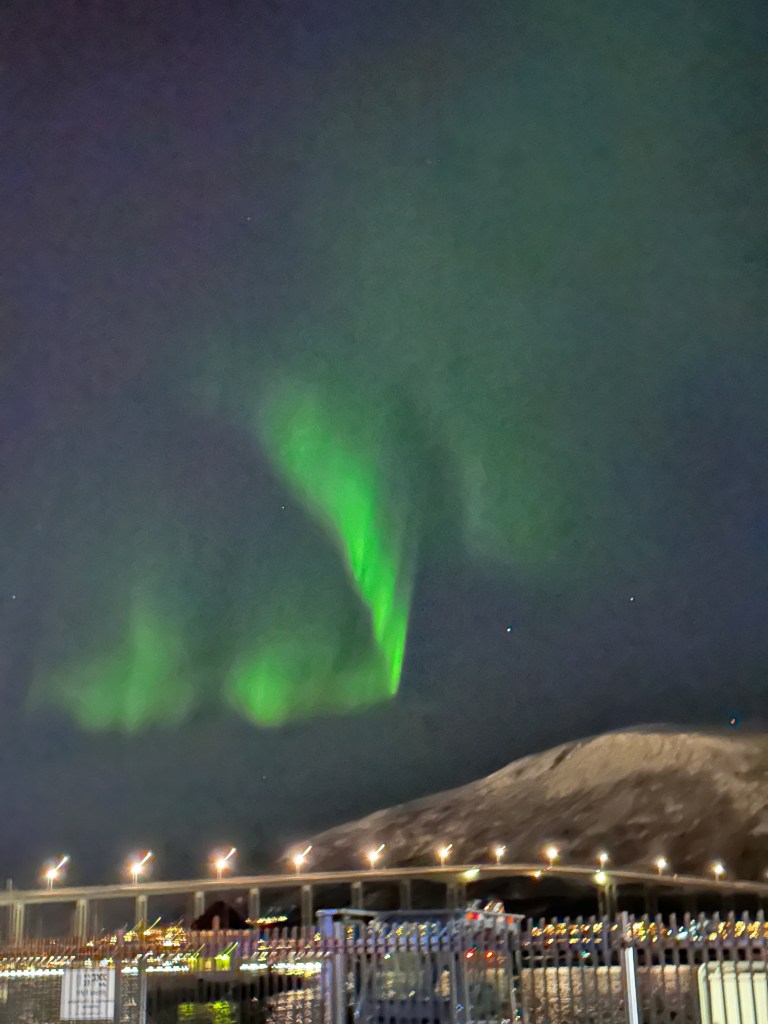 Friday morning, we left for Norway. We were heading to Tromsø, inside the Arctic circle, with the hopes of catching the Northern Lights. The weather was calling for lots of clouds and snow, and low aurora activity though, so we had low expectations.