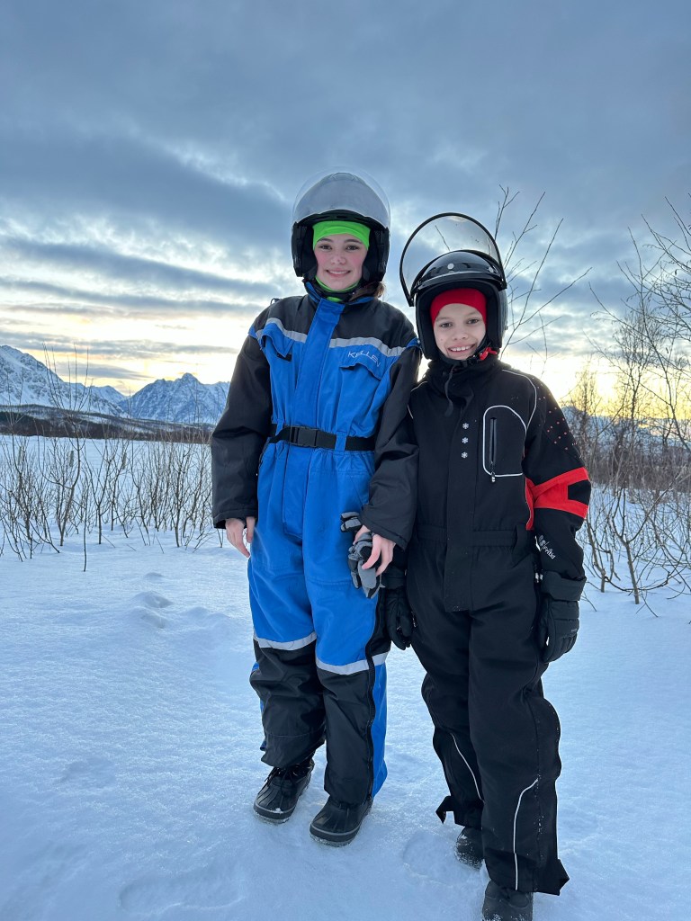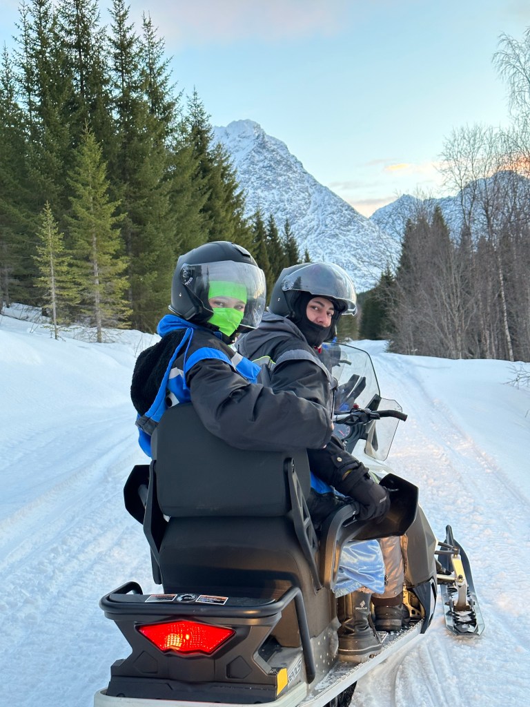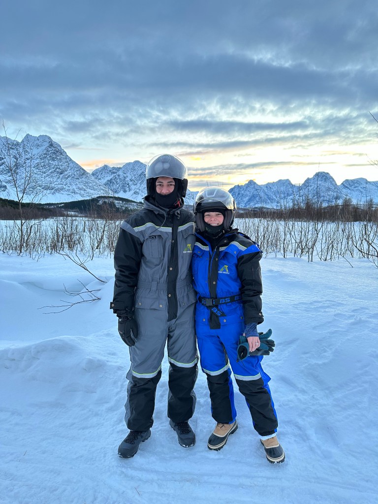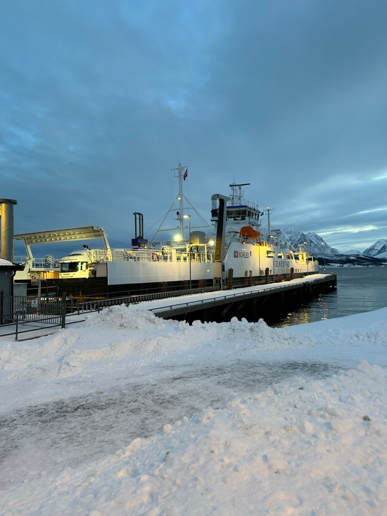 Monday was our last full day and we got up early for our last excursion, snowmobiling in the Lyngyn Alps. We met the bus at the bus terminal again and rode to a ferry port. There, another guide met us and took us across the fjord, before the final part of the trip, which was walking to where we would meet the snowmobiles.