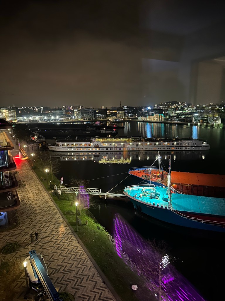 We made it to Amsterdam by 9pm. We stayed at the Residence Inn Houthavens. This is a new area of Amsterdam that was previously dockyards, but has been “re-generated” into modern housing, offices, and hotels. It is about a 15 minute bus ride to central Amsterdam so I was hesitant to stay here, but it ended up being awesome. The hotel itself is a Moxy and a Residence Inn, with the lower floors being Moxy branded and the upper floors being Residence Inn apartments. So, while we stayed in the Residence part, and had an apartment and got the free breakfast and laundry facilities, we also had access to the Moxy lobby where they had a bar, restaurant, and tons of games like chess and pool to play. It really was the best of both worlds and the distance from central Amsterdam didn’t end up being an issue at all. We all loved watching the ships coming and going in the harbor.