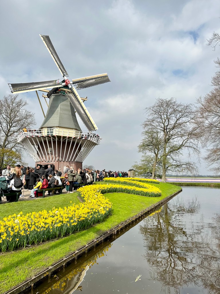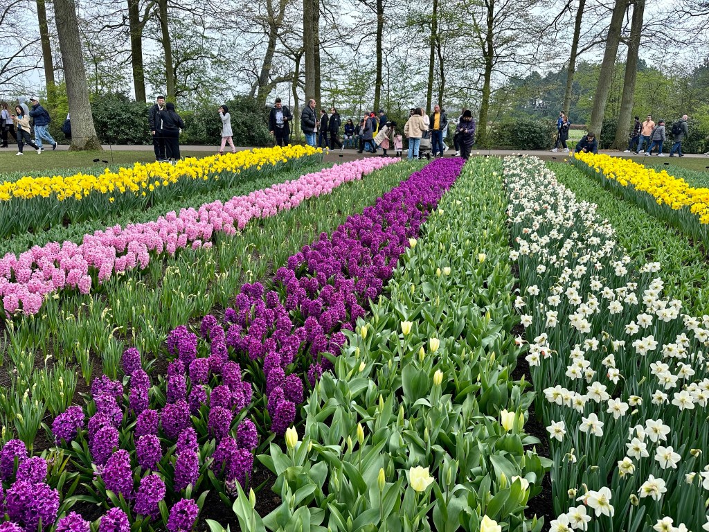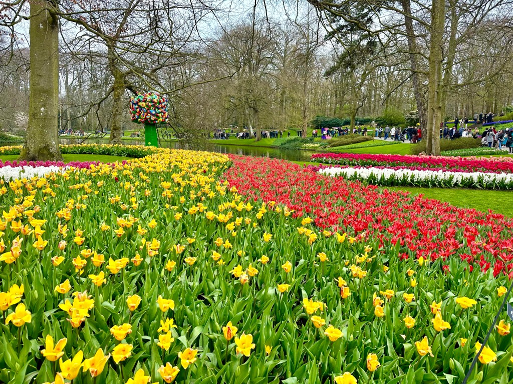 When we arrived at Keukenhof, of course it was a crazy madhouse. Tens of thousands of grannies were clogging up every sidewalk and display, taking pictures on iPads. It was like this the time I came before. I consider Keukenhof to be one of those things “you have to do” but definitely don’t want to repeat. The flower displays were nice, although again, a lot of the tulips were not blooming. It does require a lot of patience just to walk through the park. We did run into some of our friends from Stuttgart there so that was cool.