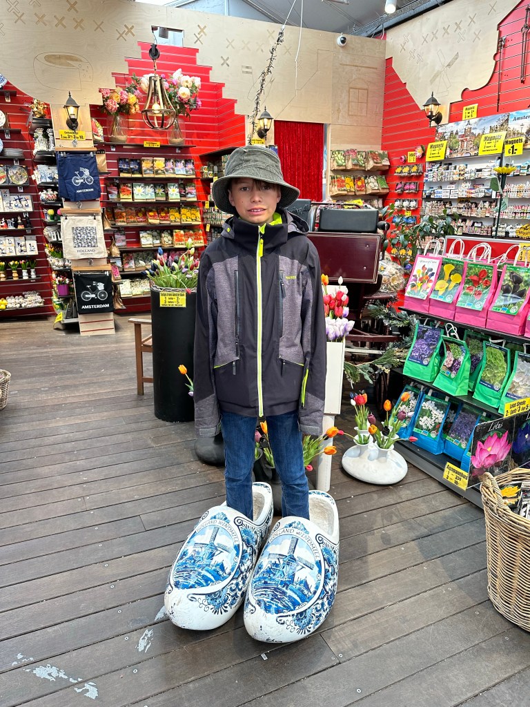 On Monday, we headed into central Amsterdam. We took the bus right to the central station and then did a lot of walking around in the city. One thing I did not realize on my last trip, was that businesses open late on Mondays- like a noon. I think this is such a great idea. Why can’t the whole world have a delayed start on Monday mornings? It would make getting back into the work week so much easier. It did not affect anything we wanted to do as we were sticking to the touristy stuff. We saw Kalverstraat, Amsterdam’s pedestrian shopping street, Dam Square and the Royal Palace, and the floating flower market. At the floating flower market, we bought lots of flower bulbs for planting next year, and the kids got churros and Belgian waffles for snacks.