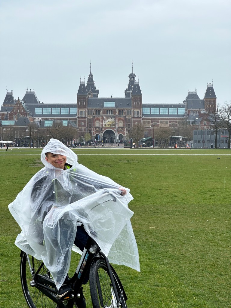 After our cruise, we rushed over to a bike shop to join a biking tour. The bike tour took us all over the city and we got to see lots of places we would not have been able to, had we been relying on our on two feet. Vondelpark and Museum Square are not very centrally located and we wouldn’t have made it to them otherwise. About an hour into the bike tour, it starting to rain heavily. Luckily, we had packed ponchos, but that did not keep our knees and shoes from getting soaked. Despite the rain, we biked about twenty more kilometers that day and had a blast. Ryan did crash in to another biker, but luckily both were ok.