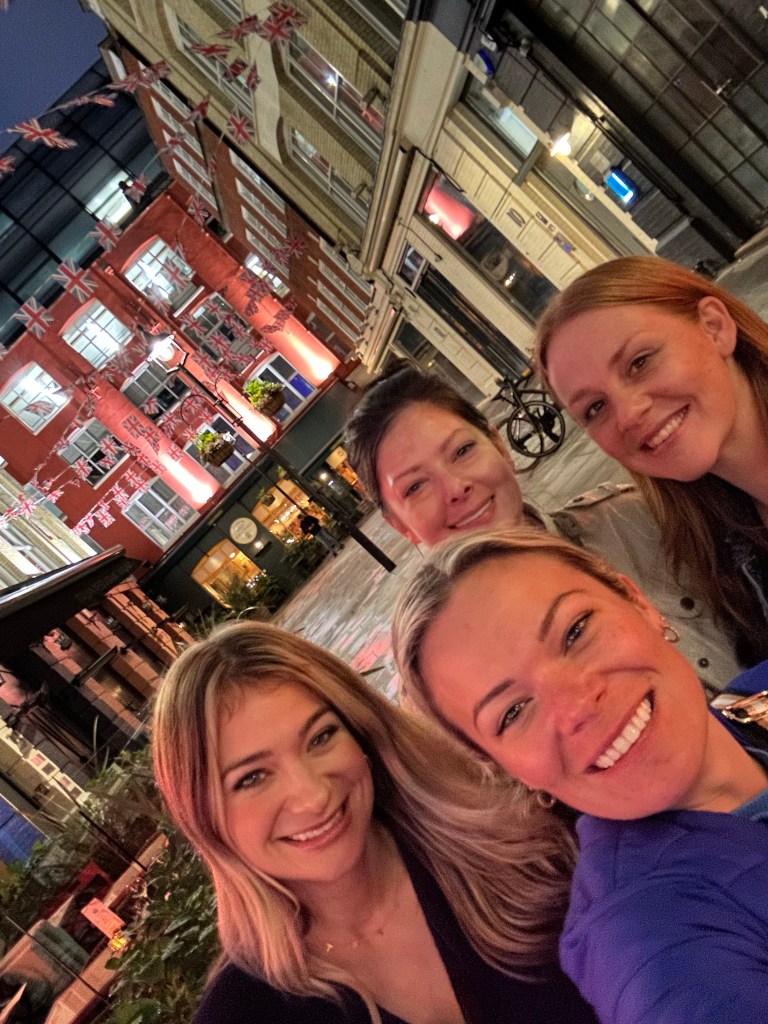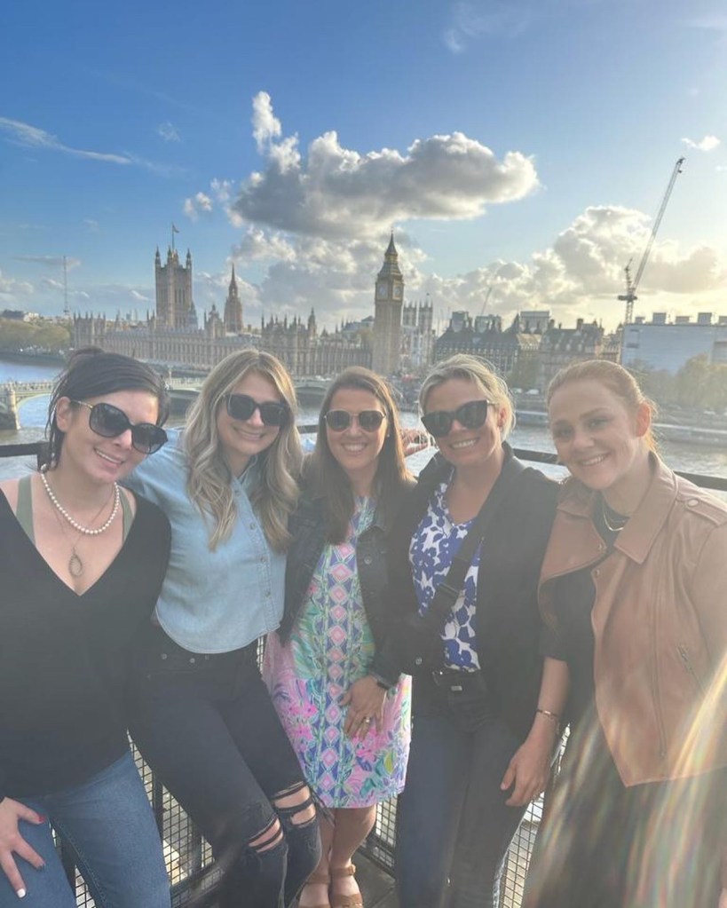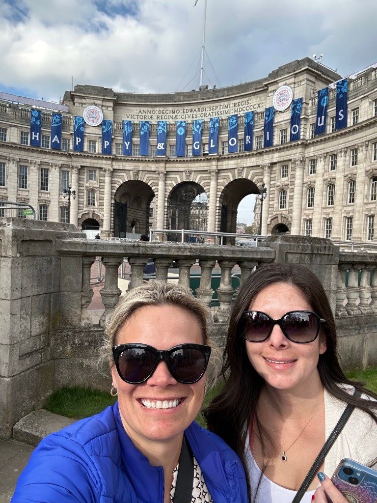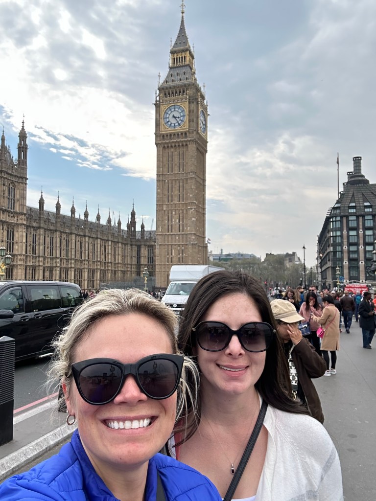 We spent Wednesday getting caught up on things around the house and Thursday, I headed to London. I was meeting my cousin Amanda, sister Alli, and friend Megan for a girls trip over the Coronation weekend. Amanda and I both flew in Thursday morning and we met at Heathrow Airport. We checked into our hotel and then headed out for a walk around London. We started near Westminster Abbey, which was already blocked off for traffic and had the media pens set up around it. It was super crowded, but we made our way through the crowd, past the Houses of Parliament and Big Ben, and then across Westminster Bridge to the South Bank.
