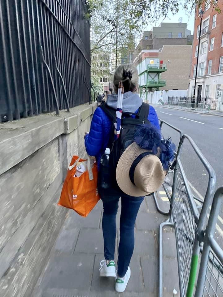 St. James’ Park was already packed when we arrived. We chose a spot that looked pretty thin, but we were still about 10 rows back. Within the first few minutes, people left and shifted around and we moved up to about 5 rows back. We made ourselves comfortable and started the wait. We had brought food and drinks with us so we had our breakfast, Alli pumped, and we chatted with the people around us. Many people around us were fighting over space so we mostly just sat and kept our heads down. As we got closer to 11, people sitting in folding chairs, folded them up and we were able to move a little closer up, where we only had two rows of short people in front of us. Just before 11, it started raining pretty heavily and we had to put ponchos on. The rain really made everyone’s mood a bit more sour and people around us continued bickering over space.