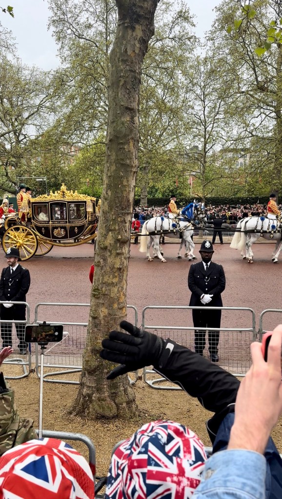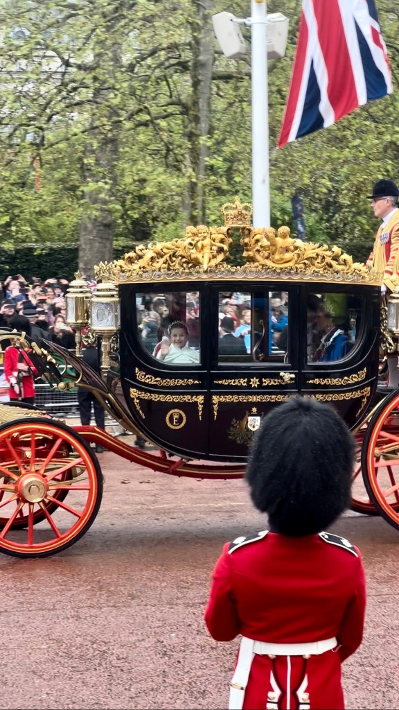 We watched the procession back to Buckingham Palace and saw the King and Queen in the gold state carriage, as well as other members of the family in their carriages. Princess Charlotte was really waving enthusiastically in our direction and it was a little surreal seeing them so close in person.