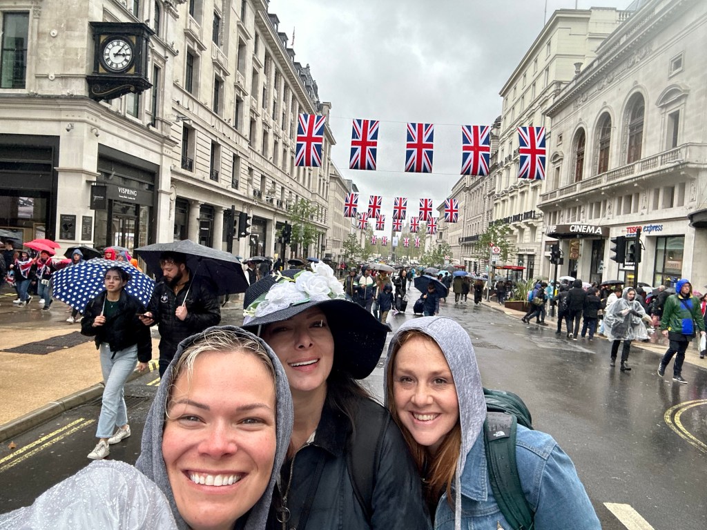 It was really special to be in London during the coronation and see a bit of history happening. It was definitely a different vibe from the Royal Wedding a few years ago though. At the wedding, everyone was happy and in a great mood. There was plenty of space to spread out and no one was fighting over where they were standing. At the coronation, everyone was bickering and fighting, and pushing and shoving. There were definitely more people trying to fit into a smaller space and that probably had a lot to do with it. Then, add in the rain and people were really sour. Maybe a wedding just inspires better moods? Who knows. Although it was a more tense atmosphere, we all felt incredibly lucky to have been able to go.