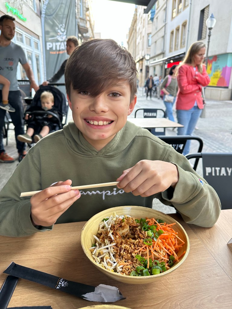 Since Luxembourg is a French speaking country, that means we could find Ryan’s favorite fast food chain, Pitaya, which serves Thai street food. We had dinner there and then a few drinks on the square and called it a night.
